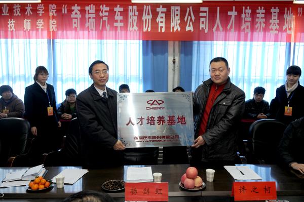 随后双方领导签署了“人才培养基地协议书”,将我院确立为“奇瑞汽车人才培养基地”。