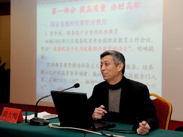 周大恂教授做《提高质量办好高职 认真准备迎接评估》报告