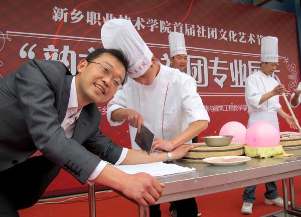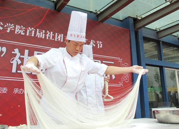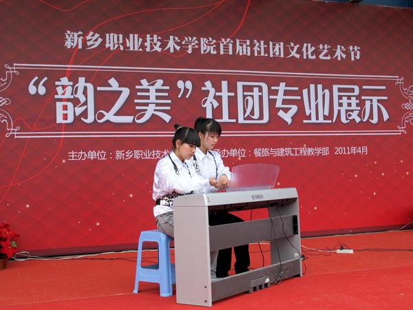 4月20日下午,作为学院首届社团文化艺术节的首场演出——餐旅与建筑工程教学部举办的“韵之美”社团专业展示在一号教学楼前隆重举行。