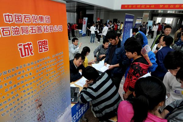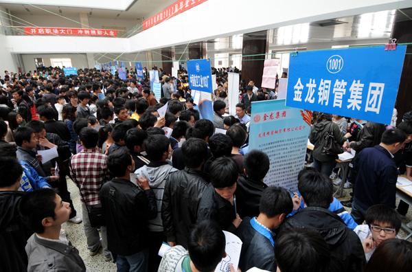 当日,由学院招生就业处主办的应届毕业生供需见面会在综合楼一楼大厅举行。来自全国各地的一百五十余家用人单位参加了本次招聘会。上午8点30分招聘会开始,现场“商家”林立,求职学生络绎不绝。