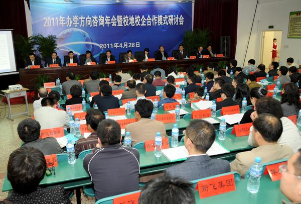 郑州经济开发区负责人武斌,芜湖经济开发区副主任罗洪涛,豫飞重工集团董事长郭章先,新运集团副总经理浮捍东先后在年会上发言,就校地合作与校企合作等问题进行了阐述。