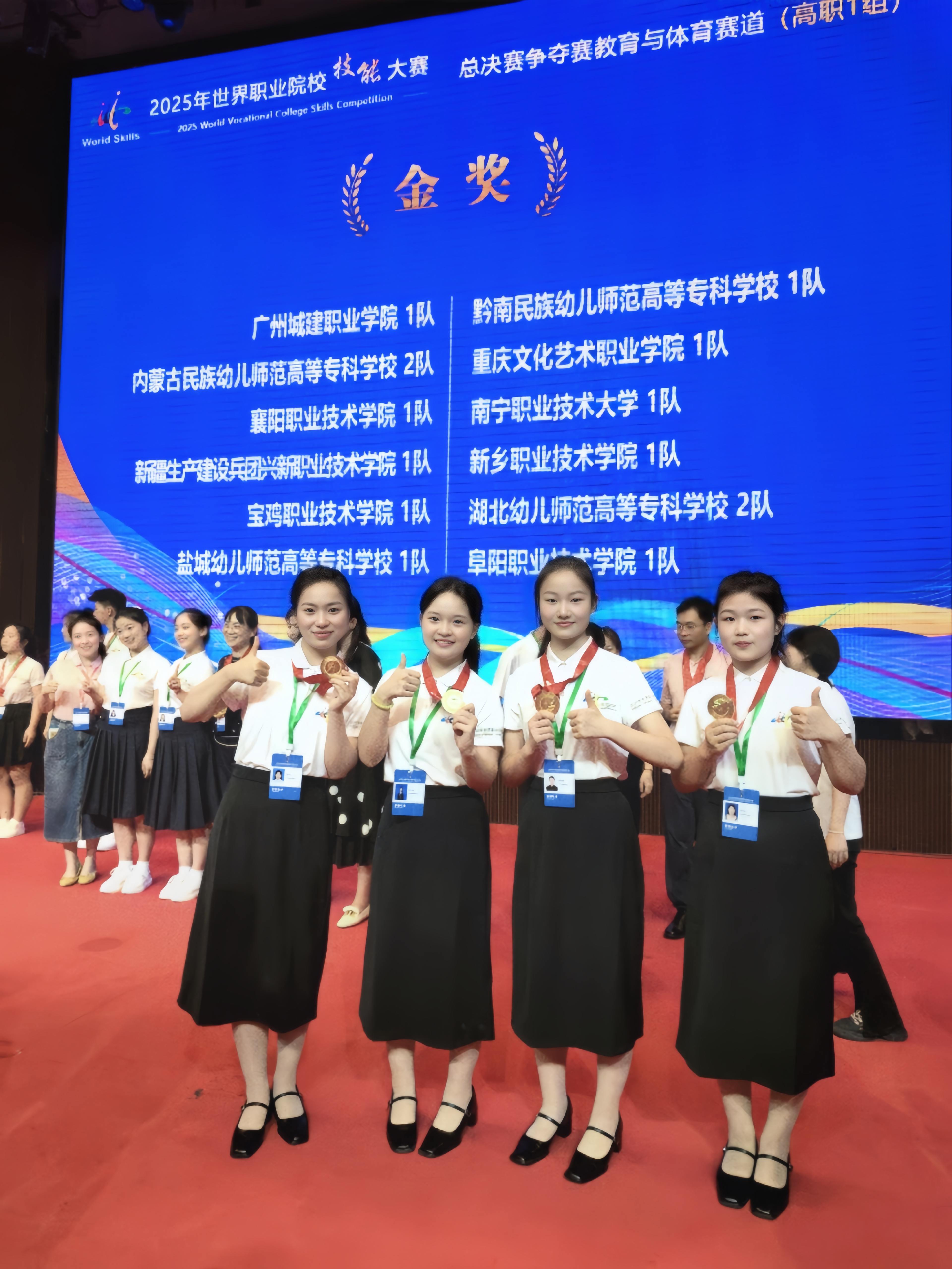 当天上午,从世界职业院校技能大赛总决赛现场传来喜讯——我校师范学院小学教育专业学生郭佳梦、赵月萍、李宇婷、王含月在激烈的竞争中脱颖而出,斩获教育与体育赛道金奖。这是我校在该赛事同一赛道第二次荣获金奖,这一成绩凝聚了师生无数汗水,充分彰显学校在职业教育领域的深厚实力与育人成效。