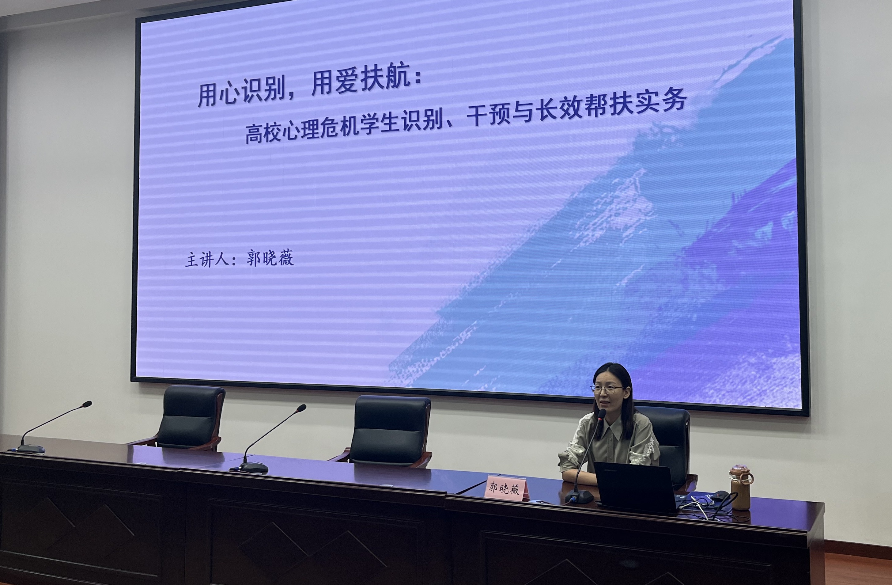 新乡学院大学生心理健康指导中心副主任郭晓薇带来《用心识别,用爱扶航:高校心理危机学生的识别、干预与长效帮扶实务》专题讲座,通过典型案例分析,详细讲解了心理危机学生的识别方法、干预策略以及长效帮扶机制的构建,强调了辅导员在心理危机预防与干预中的重要作用。