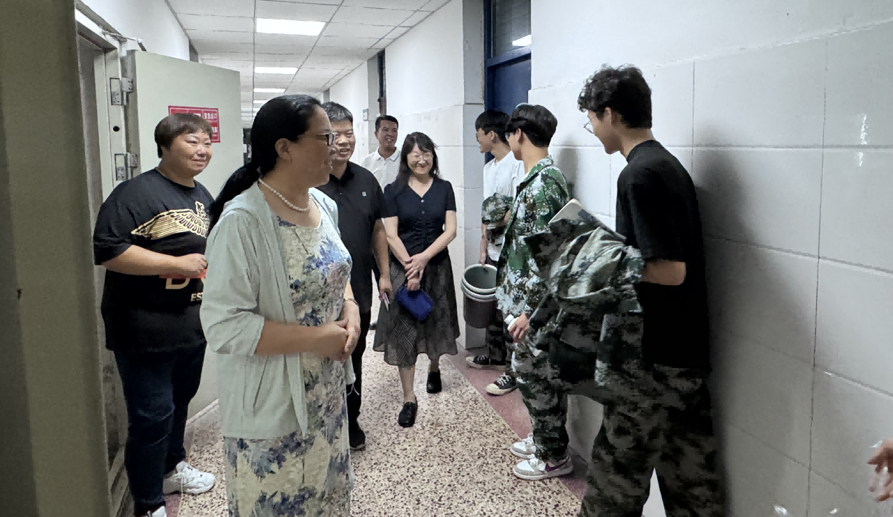 夏锦红首先来到新生宿舍,与刚刚安顿好的新生亲切交流,细致询问生活设施适应情况。见到正在帮助孩子熟悉环境的家长,她主动上前介绍学校新生适应性培养的安排,从生活服务到学习资源,一一回应家长关切。一位家长感动地表示:“学校把服务送到身边,孩子在这里我们非常放心!”