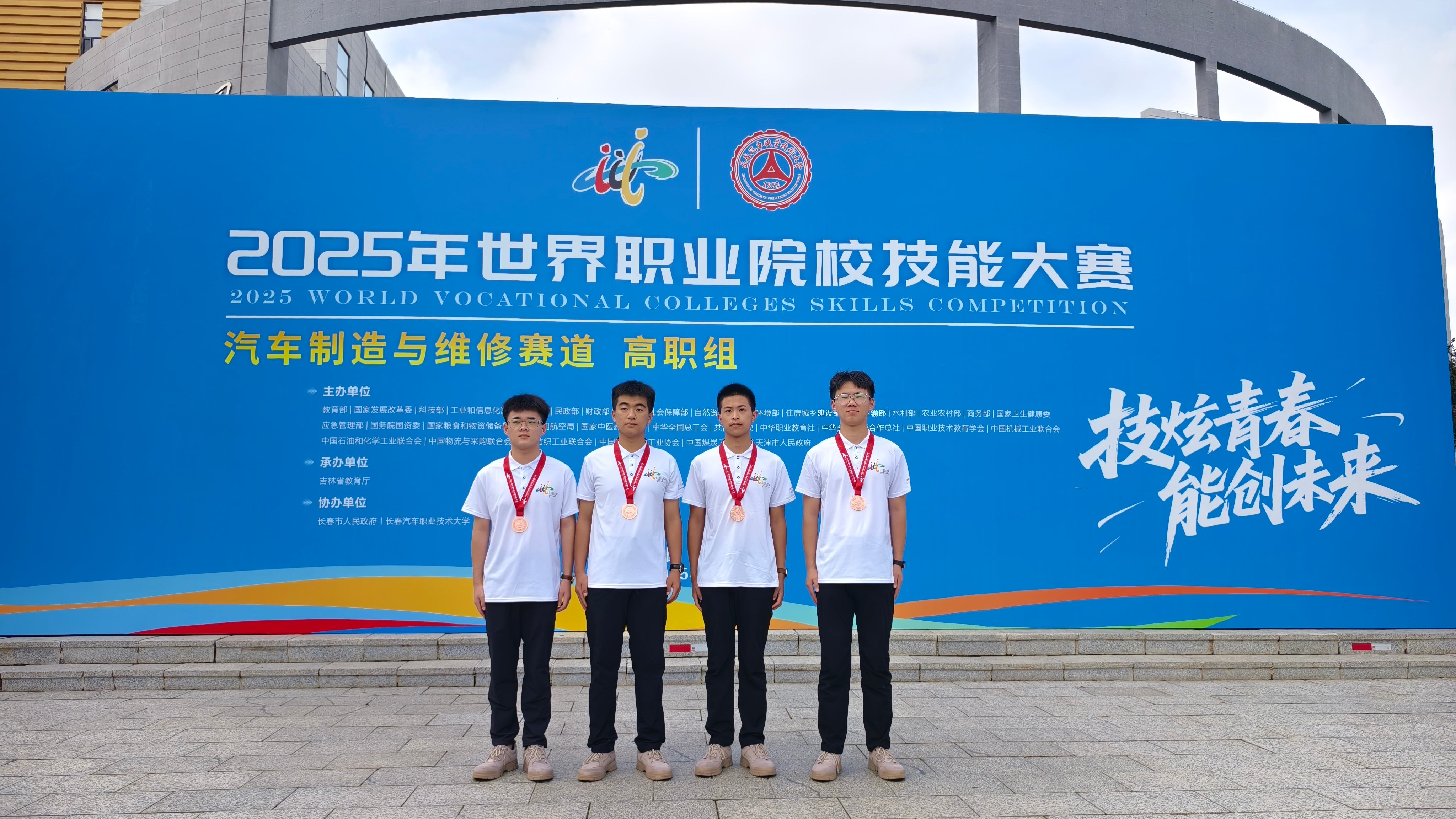 9月1日,长春汽车职业技术大学的闭幕式铜钟清脆作响,2025年世界职业院校技能大赛汽车制造与维修赛道的激烈角逐正式落下帷幕。在这场全国职业院校的巅峰对决中,首次征战该赛道,书写了一段从“零经验”到“夺铜牌”的逆袭传奇。霍政豪、寇嘉轩、王志文、赵梦渲四位学子,在教练团队的带领下,从全国180余支劲旅中突围,不仅为学校捧回一枚沉甸甸的铜牌,更一举打破交通学院在该赛项的奖牌“零纪录”,用实力证明我校汽车职业教育的“新兵”,同样能在国家级赛场跑出“加速度”。