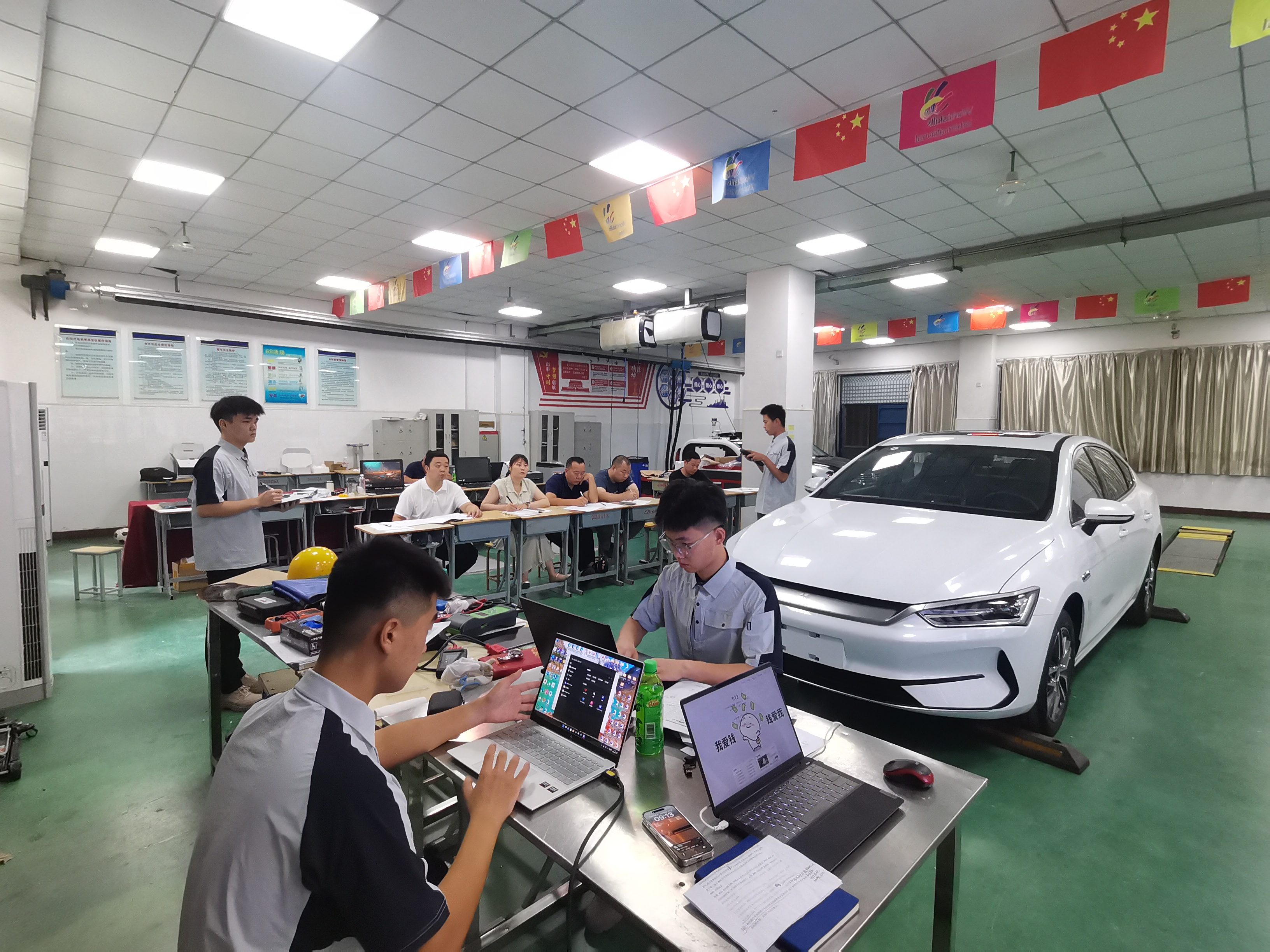 此次比赛指定使用红旗新能源车型,为解决训练设备难题,学院迅速联动新乡盛世汽车销售服务有限公司、新乡天恒价格评估有限公司两家产教联盟单位,开启校企协同备赛模式。企业不仅将用于实际生产的比赛车型支援给团队训练,还派驻资深工程师与教练团队混编组成“双导师团”,把行业里的“真问题”“真技能”“真成果”同步搬进实训室。