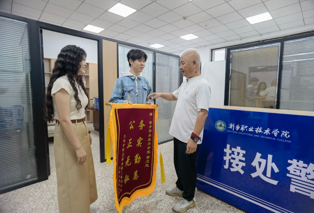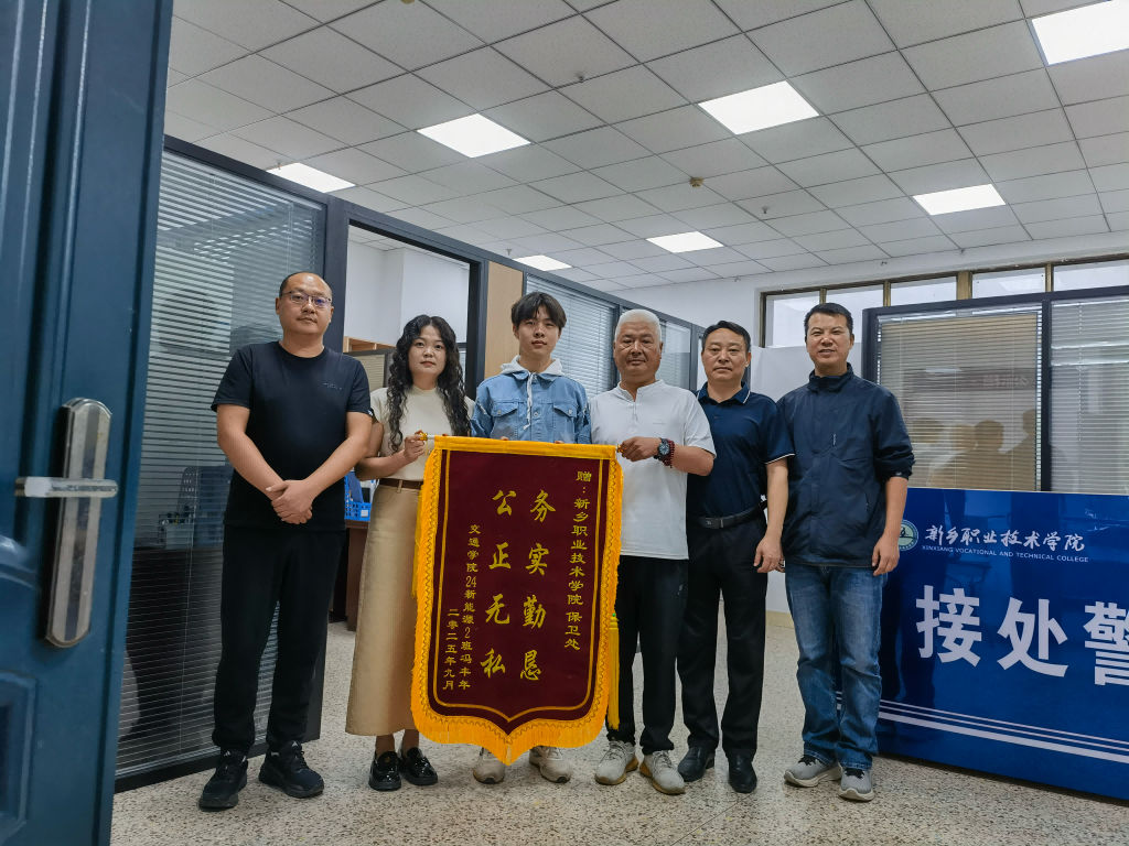 当冯丰年同学从老师手中接过完好无损的财物时,激动不已,连连向两位老师道谢。为表达心中的感激之情,他特意定制了一面印有 “务实勤恳,公正无私” 的锦旗,送到安全保卫处。
