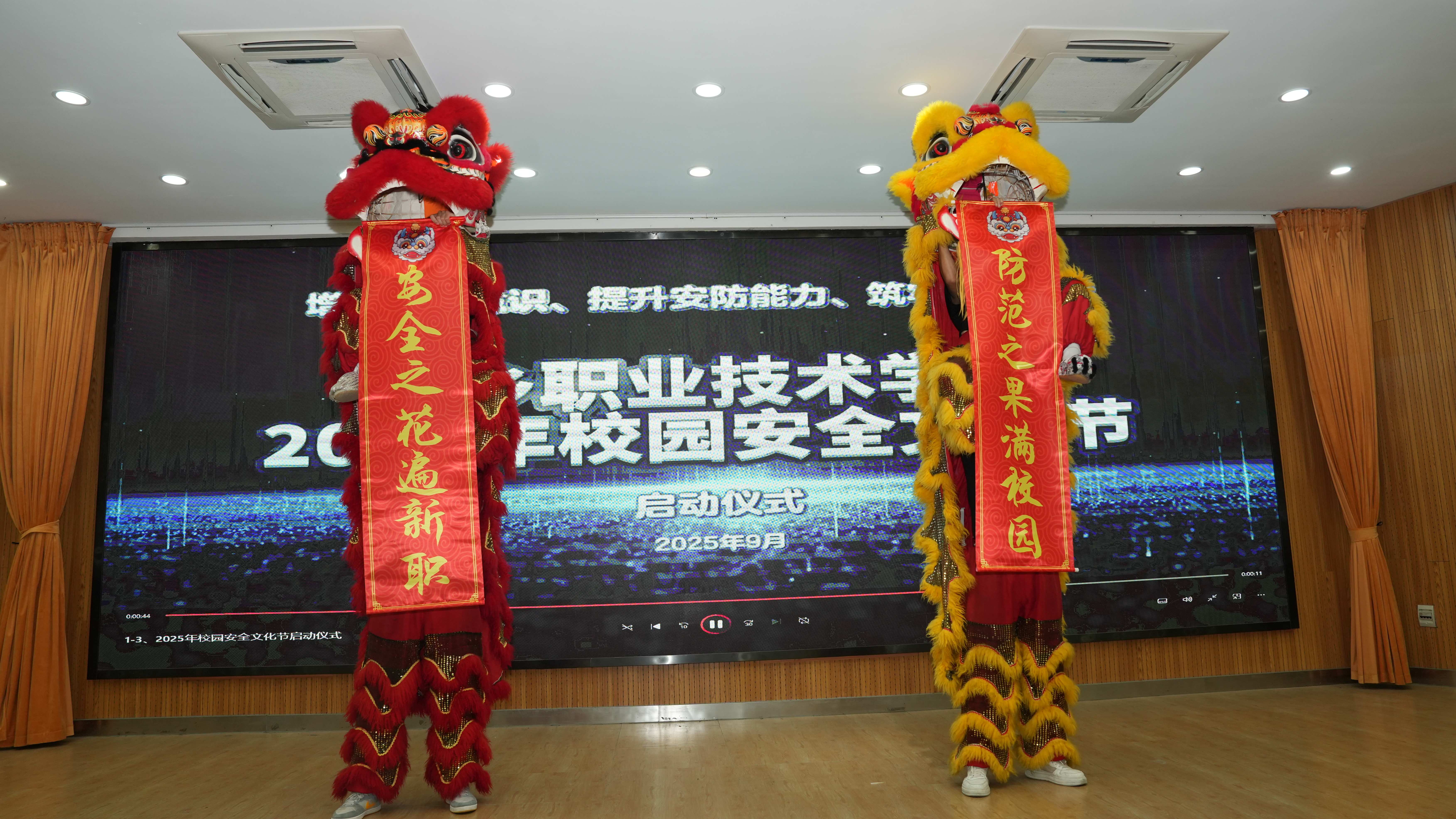 随后,精彩的舞狮表演“安全之花遍新职,防范之果满校园”将现场气氛推向高潮,象征着安全理念在校园中生根发芽、开花结果。在倒计时仪式中,相关领导共同启动本届安全文化节,并合影留念。