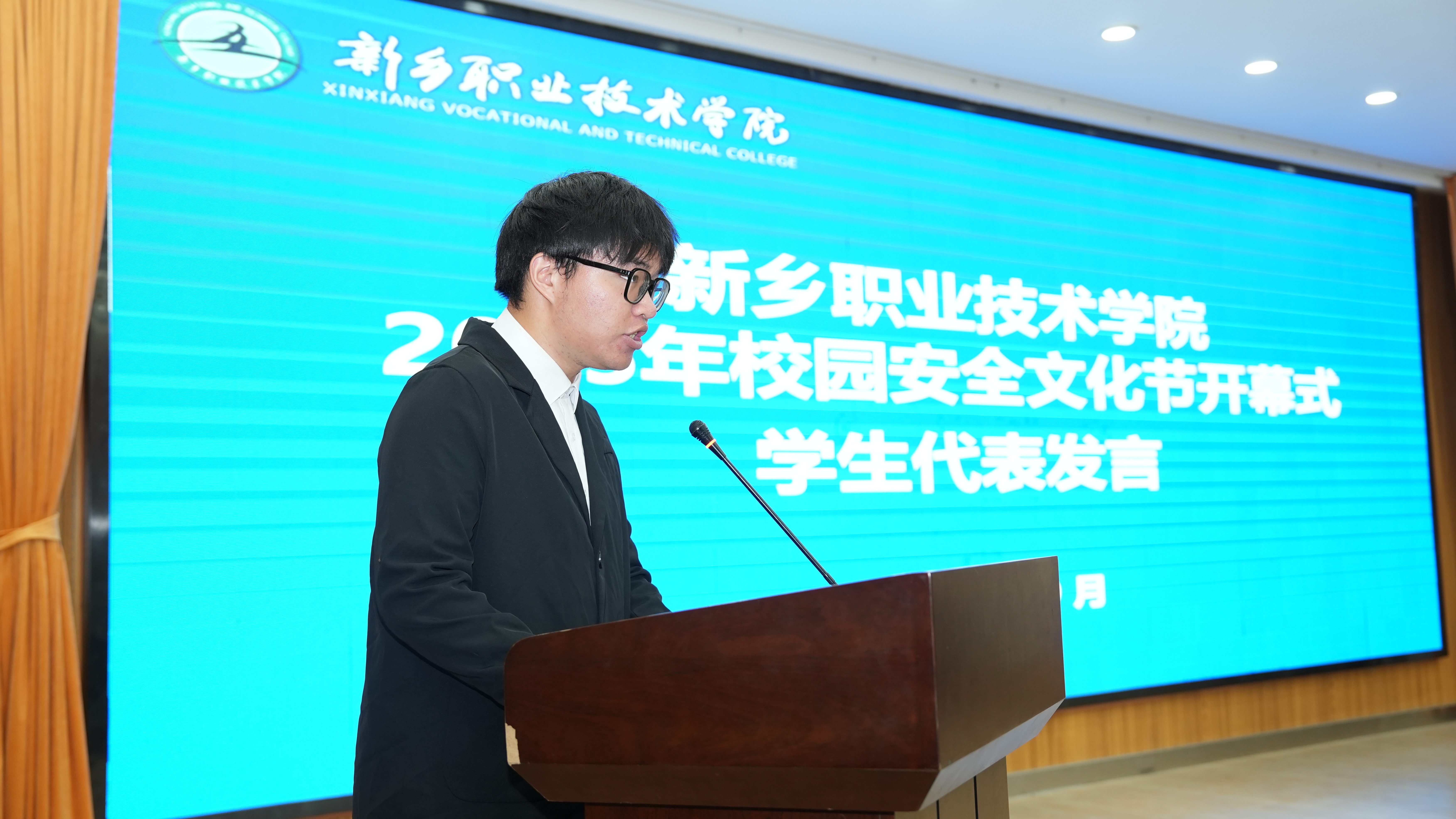 9月29日上午,新乡职业技术学院第二届校园安全文化节开幕式在实验楼一楼阶梯教室隆重举行。学校党委书记张林出席并致辞,相关职能部门、各二级学院负责人及学生代表齐聚一堂,共同开启本届安全文化节系列活动。