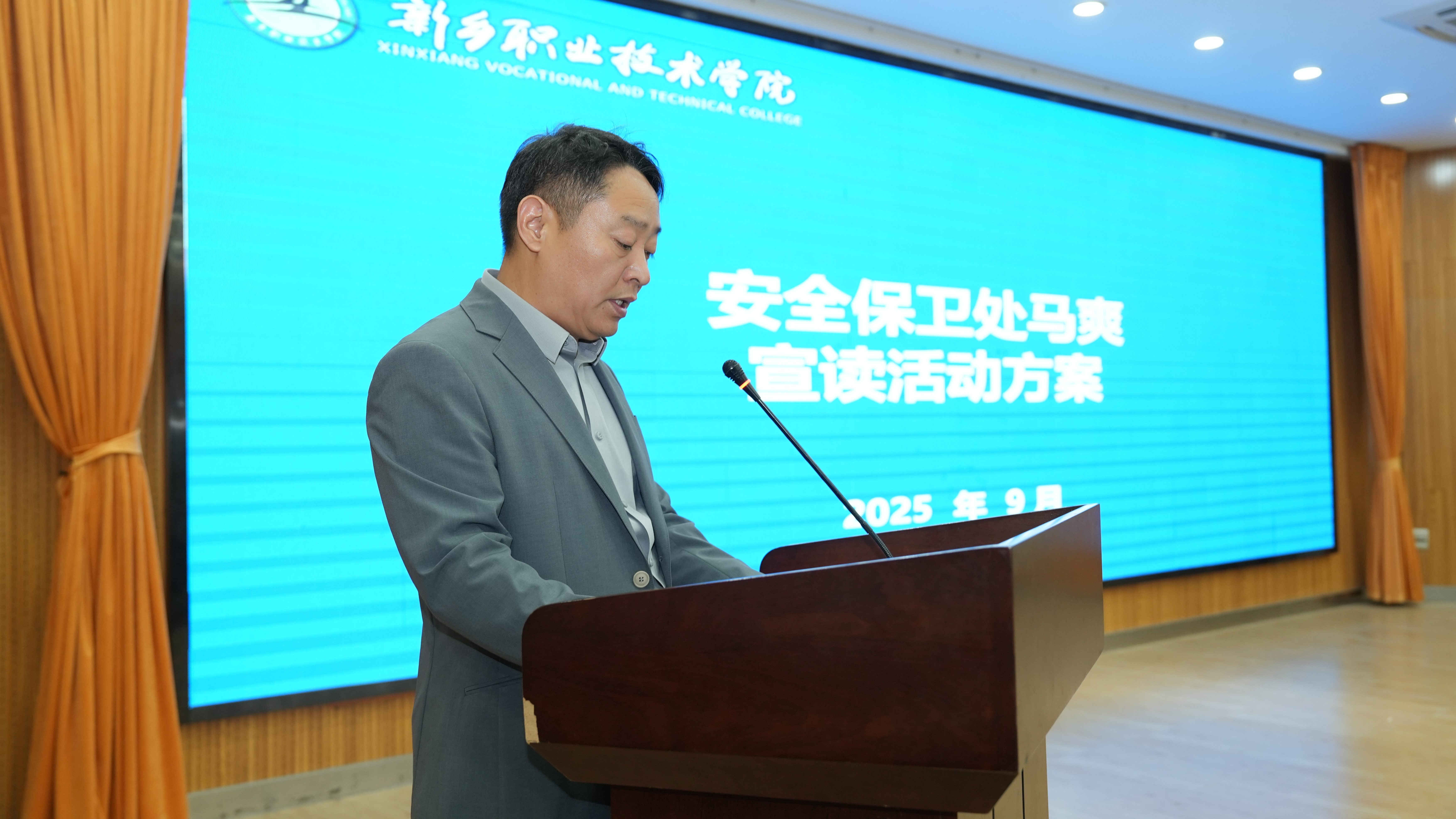 安全保卫处副处长马爽宣读了2025年校园安全文化节活动方案,详细介绍了本届文化节的各项活动安排与目标。