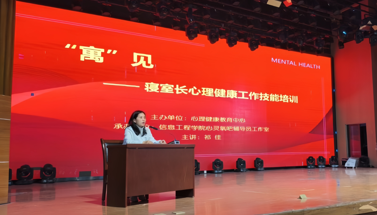 为切实提升2025级寝室长的心理健康管理能力,扎实推进校园心理健康教育普及工作,充分发挥寝室长在学生心理健康守护中的“前沿哨点”作用,10月21日,由学校心理健康教育中心联合信息工程学院心灵氧吧辅导员工作室共同主办的寝室长心理工作技能培训讲座成功举办。全校2025级各寝室长代表参与本次技能提升课程。