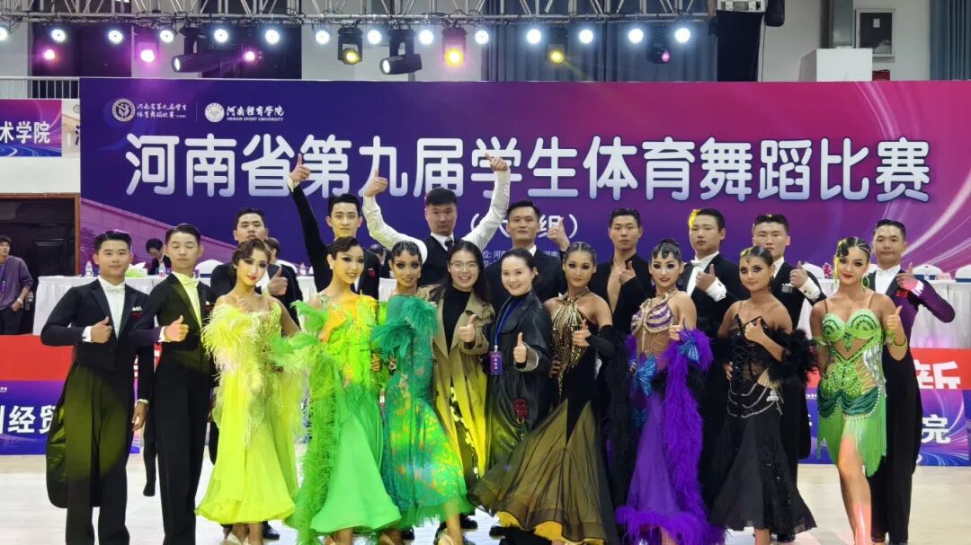 我是艺术学院党总支副书记周莉。在10月16日至19日于河南体育学院举行的第九届学生体育舞蹈大赛中,我院舞蹈表演专业的36名学子,与来自全省43所高校的2000余名选手同场竞技,最终在乙组(专业组)豪取9金、4银、12铜的佳绩。目睹学生们手捧奖牌、笑容灿烂地站在聚光灯下,我与指导老师黄涛、裴真都感到无比幸福与自豪。