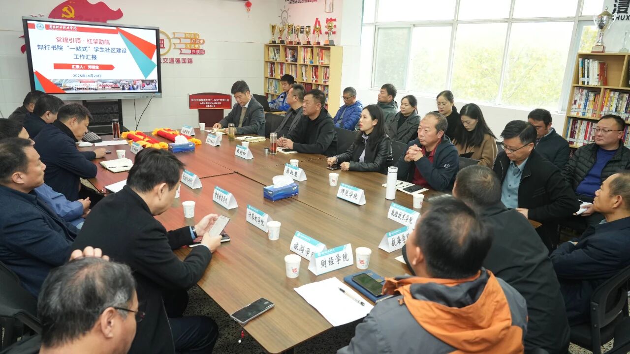 在交通学院党总支副书记陈凌翔的陪同讲解下,与会人员实地走访了知行书院大厅、辅导员工作站、文化长廊和学生宿舍。整洁的居住环境、鲜明的育人场景、浓厚的文化氛围,展现了社区“生活+技能+思政”三维融合的育人格局。从一楼“红色精神谱系”展示区,到四楼专升本经验分享区,分层分类的文化浸润设计与党员亮身份、共享自习室等便民举措,赢得了与会人员的广泛好评,被认为形成了可复制、可推广的典型经验。