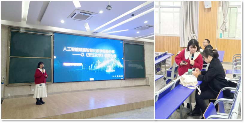 线下培训环节聚焦实践应用,四场主题分享各具特色。在10月17日的首场培训中,彭盼盼老师以《烹饪化学》课程为例,生动展示了如何利用学习通平台赋能智慧化教学。她不仅通过投屏功能,实时演示了“选人”“问卷”“主题讨论”等课堂互动技巧,让参训教师在亲身体验中掌握功能应用,更分享了利用碎片化时间备课的实用“小妙招”——如提前将PPT上传云盘,即可在手机上随时随地进行编辑、插入课堂活动,极大提升了备课效率。