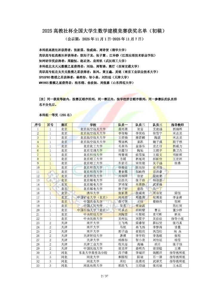 近日,全国大学生数学建模竞赛国家奖获奖初稿公布,由我校基础课教学部许霞老师指导的学生陈蓉佳、赵淑娴、尚梦丹团队凭借扎实的专业功底、创新的解题思路与紧密的团队协作,在全国数万支参赛队伍中脱颖而出,成功斩获国家二等奖,为学校赢得了荣誉。