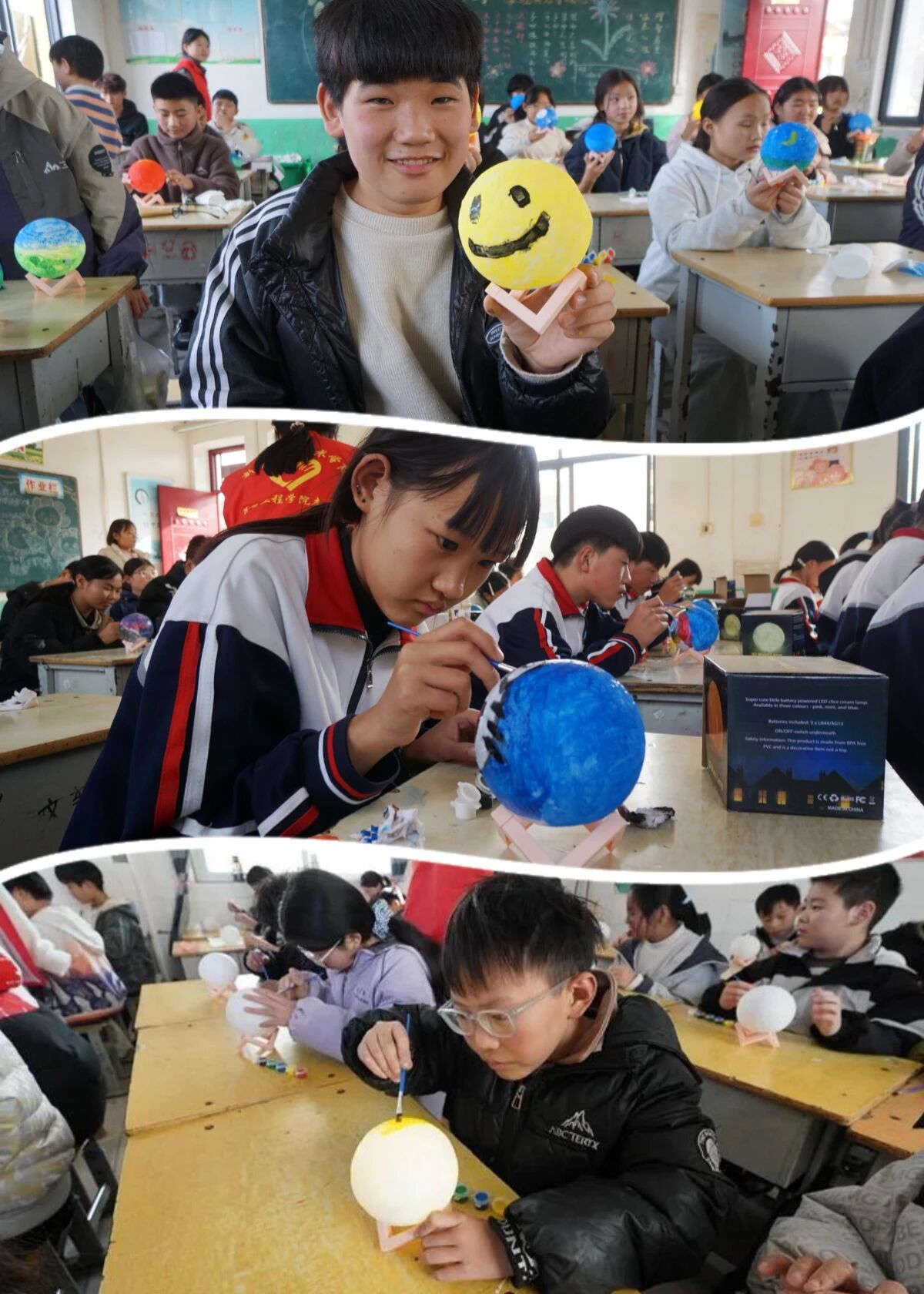 在志愿者的指导下,孩子们根据自己对太空中星球的想象,用画笔和颜料描绘属于自己的星球灯,把对太空中星球的美好向往做成专属纪念品:有绚烂的星云,有红色的“火星地貌”,有绿色的地球家园,还有充满想象力的奇幻外星球。每一盏星球灯都饱含着孩子们对太空的独特理解和热切向往,成为他们探索科学、放飞梦想的独特载体。