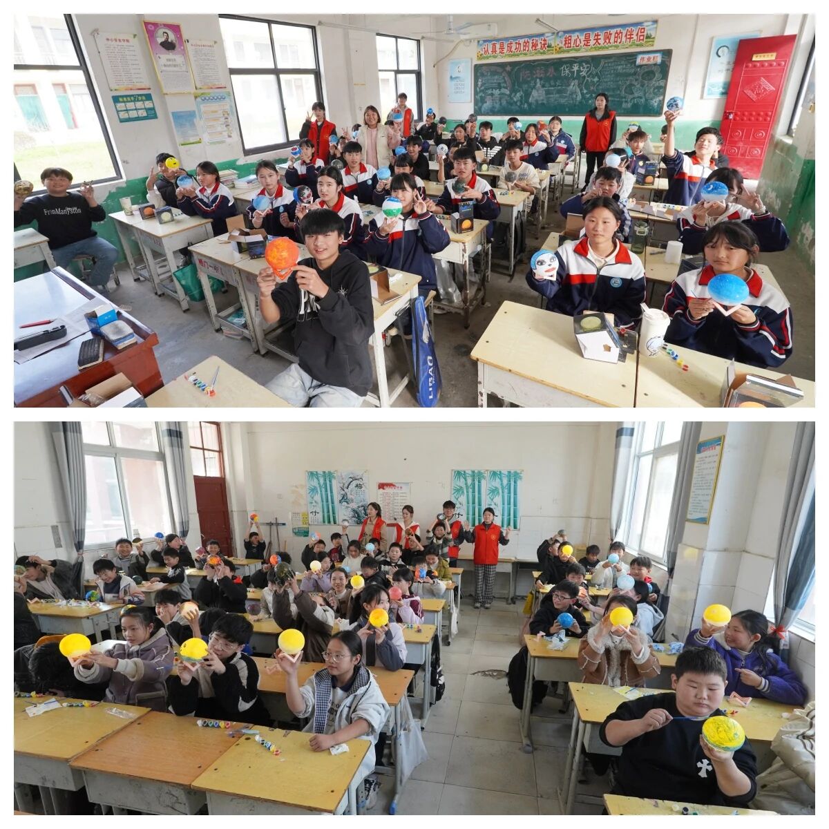 11月11日,新乡职业技术学院志愿者团队走进原阳县路寨乡王村中心小学和陡门乡第一初级中学,开展“快乐成长”文艺助力乡村学校少年宫新时代文明实践行动共4场。活动围绕太空探索主题,通过知识科普与创意手工相结合的方式,让乡村孩子们在趣味互动中探索宇宙奥秘,点亮了他们心中的科学梦想。