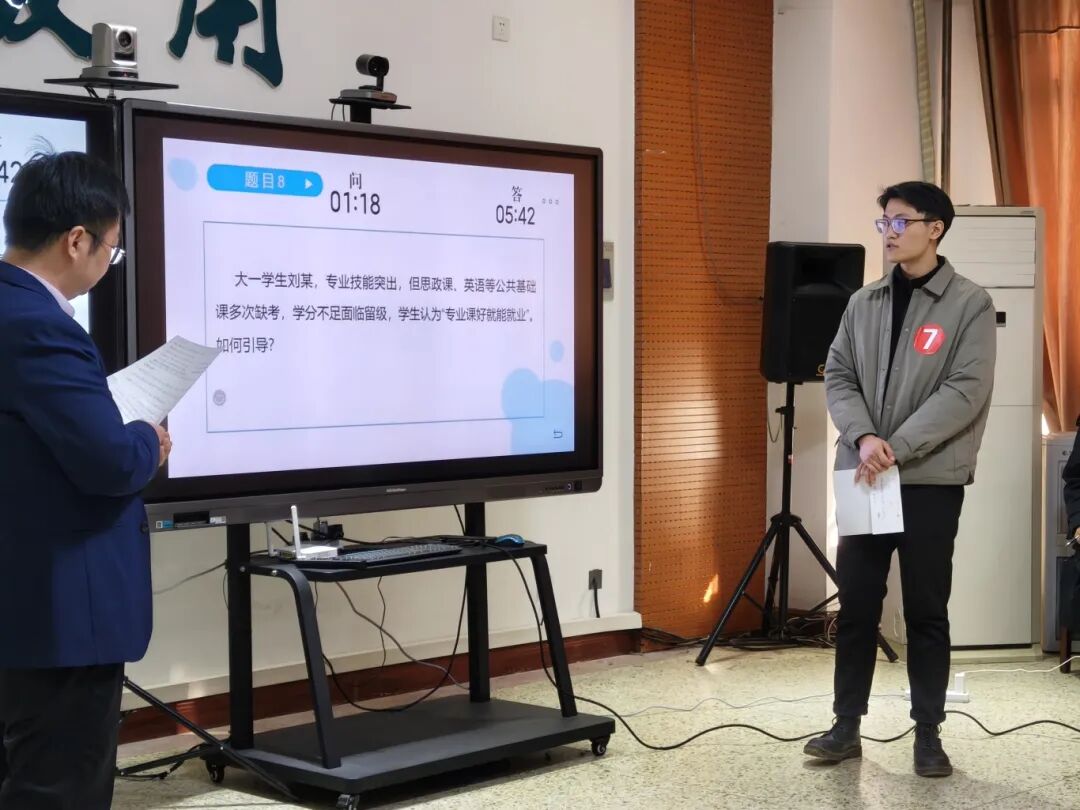 在比赛中,选手们表现出扎实的理论功底和敏锐的洞察力,他们思路清晰、层次分明,能够准确把握问题核心,提出切实可行的解决办法。评委从专业角度对选手的表现进行综合评判。经过紧张的比拼,最终评选出10名优秀辅导员晋级决赛。