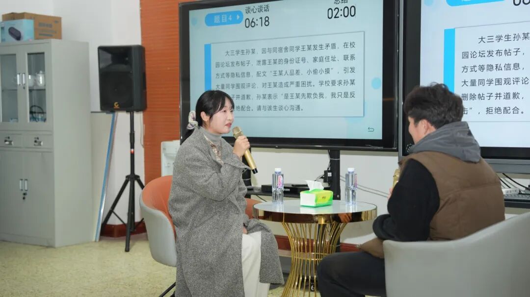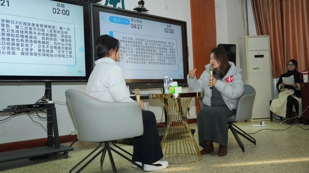 9日下午,在众多师生的关注下,决赛如期开展。晋级的10名辅导员选手在谈心谈话环节中,面对学生提出的各类复杂问题,展现了出色的沟通能力和心理辅导技巧。选手们以真诚的态度和专业的素养,耐心倾听学生心声,细致分析问题症结,给予富有建设性的引导和建议,充分体现了辅导员对学生思想动态的关注和对学生成长的深切关怀。评委们不仅关注选手的应对能力,还注重其是否能够以学生为中心,以理服人、以情动人,展现出辅导员队伍在育人工作中的核心价值。