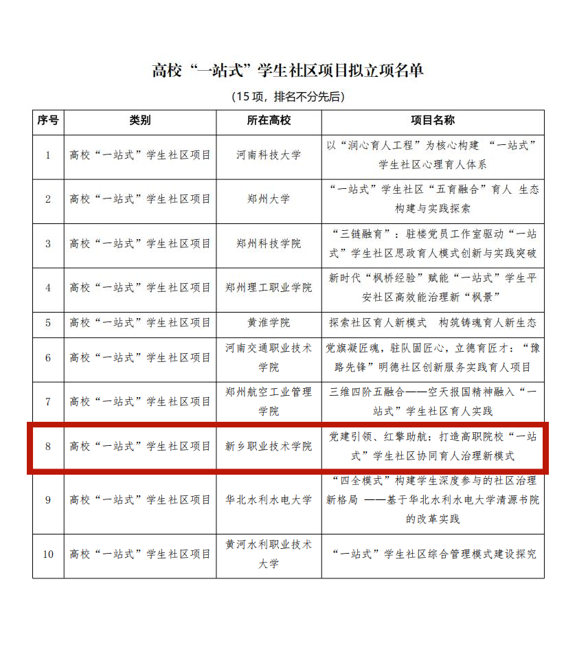 近日,新乡职业技术学院交通学院党总支双喜临门:成功入选河南省第三批“全省高校党建工作标杆院系”培育创建单位,其“党建引领、红擎助航:打造高职院校‘一站式’学生社区协同育人治理新模式”项目获批2025年河南省高校思想政治工作质量提升综合改革与精品建设项目。两项省级荣誉的落地,标志着学院深耕党建引领育人、创新社区治理模式取得显著成效,更为高职院校破解“党建与人才培养深度融合”难题提供了可复制、可推广的“交院方案”。
