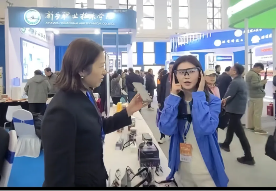 本届高博会我校共有35名师生参与,其中彭盼盼博士团队推出的“健康养生饮品系列”,令广大看展群众赞不绝口;新乡职业技术学院联合企业研发的“AI眼睛”因其高度集成化与实用化功能特点,吸引了众多参展人员的目光;数控学院的数控加工零件展示,也吸引多家机械企业现场洽谈校企合作事宜。此外,我校还带来了三个学生创新创业项目,分别是融入新乡地方元素的文创产品、非遗“拓片”、民间传统小吃“糖葫芦”,充分展现了新职学子的创新活力与实践能力。