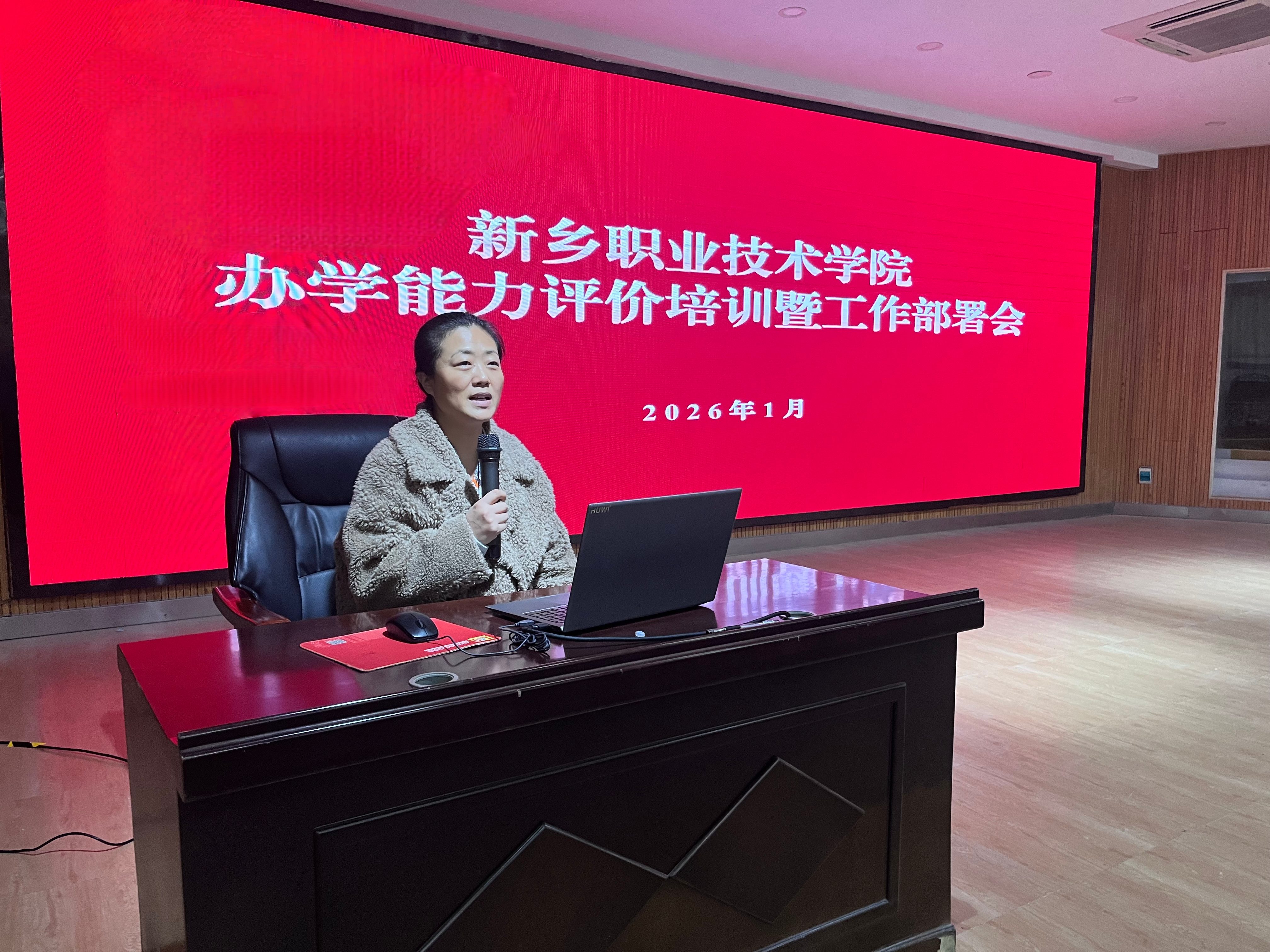 为进一步贯彻落实教育部及河南省教育厅关于高等职业学校办学能力评价相关文件精神,扎实推进我校办学能力评价各项工作,全面提升办学治校水平与人才培养质量,1月13日上午,我校在一号教学楼召开办学能力评价培训暨工作部署会。各教学单位副科级以上干部和职能部门副职干部等参加会议,会议由副校长崔风华主持。