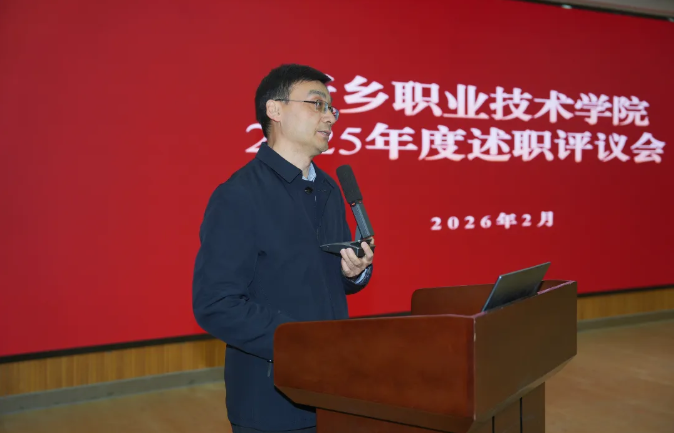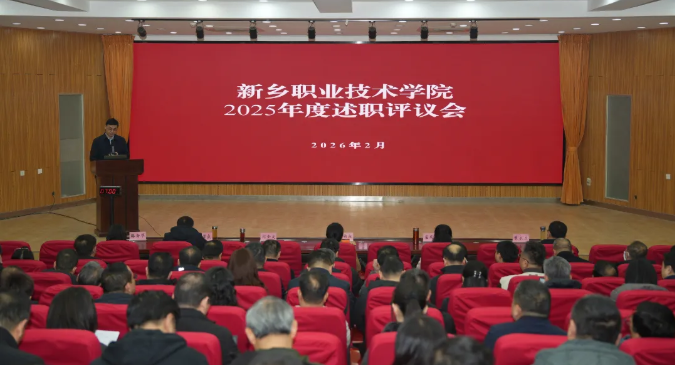 2月3日,新乡职业技术学院2025年度述职评议会在实验楼一楼阶梯教室召开。学校领导班子成员,全体中层干部参加,学校党委副书记闫金友主持会议。