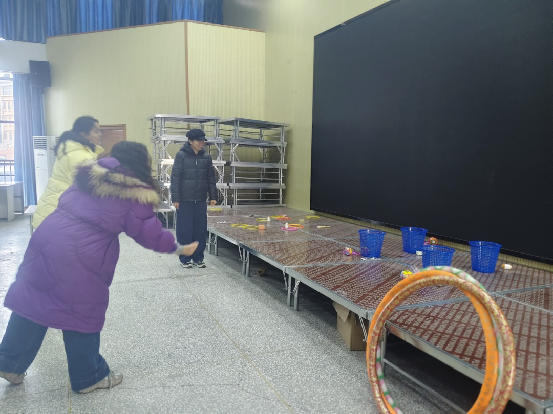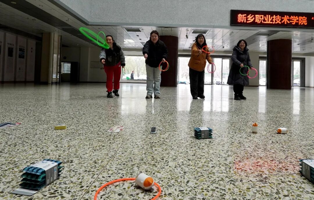 本次活动共设套圈、跳绳、大丰收(投沙包)、转呼啦圈、踢毽子和托球跑六个项目,内容丰富、形式多样,既考验技巧,又充满趣味,吸引了众多女教职工热情参与。