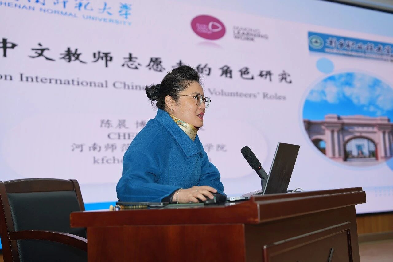 一场聚焦教育前沿的专题讲座率先拉开交流帷幕,河南师范大学陈晨女士以“国际中文教师志愿者的角色研究”为主题,深入剖析了国际中文教师志愿者在跨文化交流中的重要作用与角色定位。