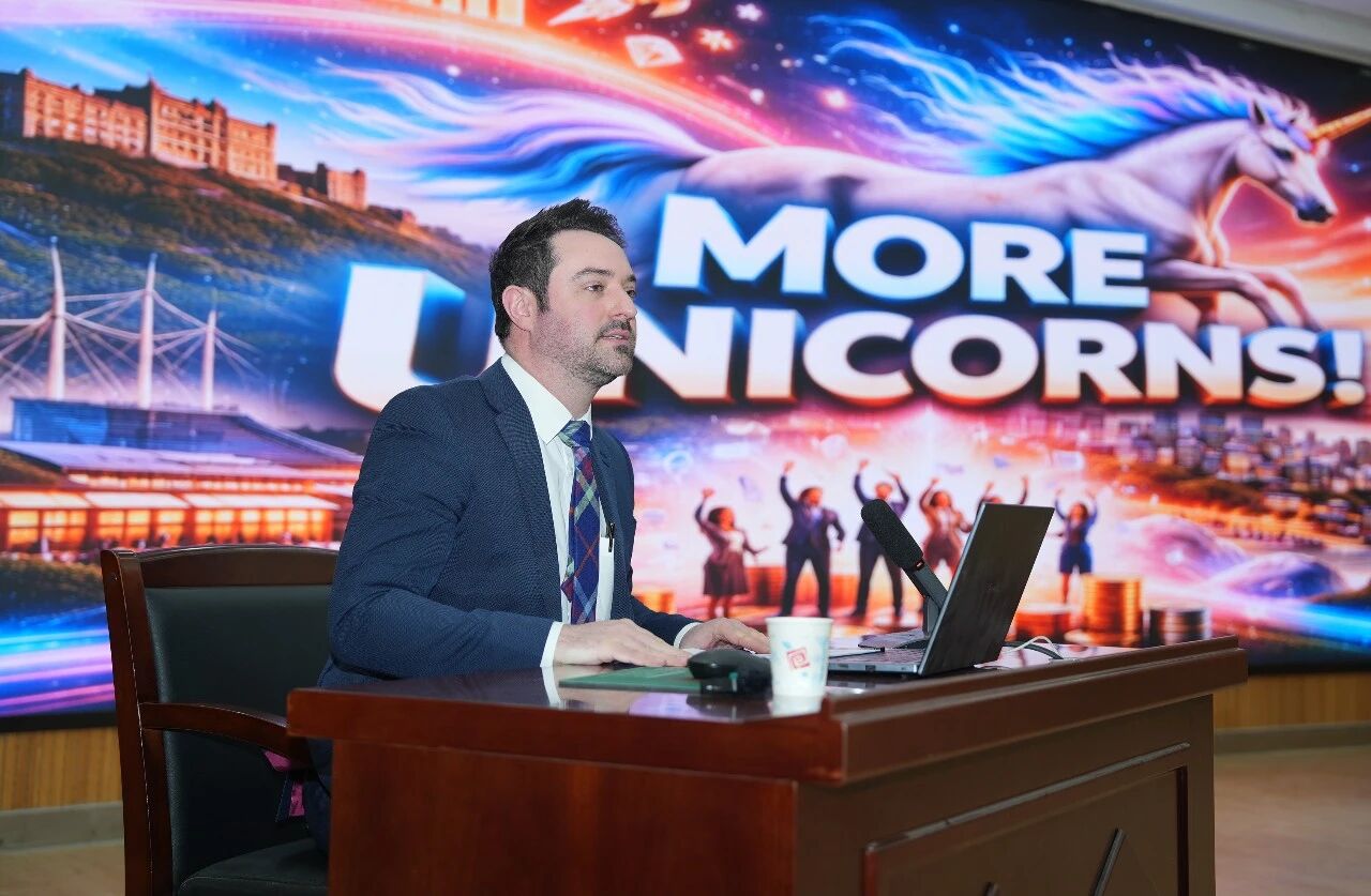 英国苏格兰福斯谷学院副校长Jamie Allan(杰米·艾伦)先生则聚焦创业园区蓝图和未来学生培养,提出将教育作为经济基础设施,其学院打造的创业型校园蓝图融企业理念于各学科,契合苏格兰 “创业型国家” 建设目标,已落地多项校企协作实践,将通过校企对接构建创业生态,以人才、创新与产业融合助推经济增长。