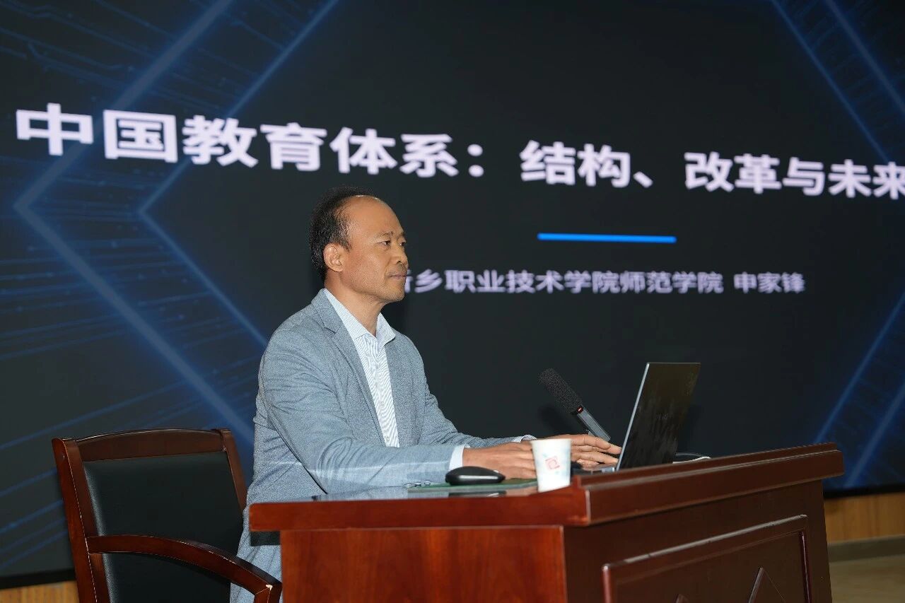 我校师范学院申家锋先生从结构、改革、展望三方面解读中国教育体系,阐释其政治、人民、战略三大核心属性,系统梳理了中国教育体系基础教育、高等教育、职业教育的改革方向及人工智能赋能教育的发展布局,并以本校师范学院为例展现地方院校的教育实践,为与会者清晰呈现了中国教育的时代脉络。
