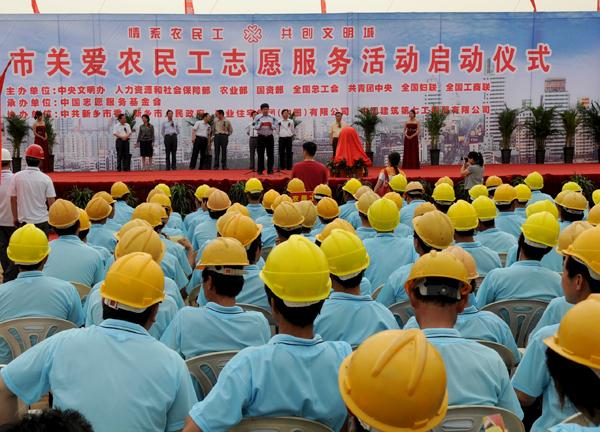 农民工代表李泽亮激动地说,党和政府全面启动关爱农民工志愿服务活动,为我们农民工成长成才创造了良好的社会环境和创业平台,我们一定抓住大好机遇,努力成为知识型新型工人。