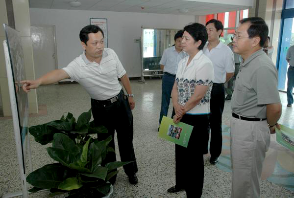 河南省委常委、宣传部部长、副省长孔玉芳(中),原中共新乡市委书记吴天君(右一)听取我院建设情况汇报