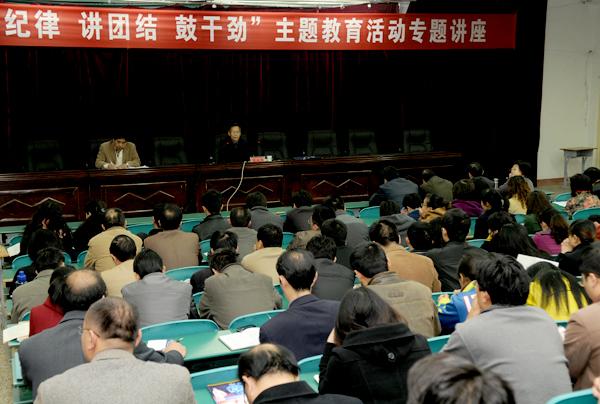 为促进学院“转作风 强纪律 讲团结 鼓干劲”主题教育活动的扎实有效开展,努力打造一支素质过硬的干部职工队伍,根据工作安排,11月3日下午,学院主题教育活动领导小组邀请新乡市委党校原法学教研室主任焦献民副教授作了题为“忠诚履职谋发展 开创职教新局面”的主题教育活动专题讲座。学院领导王建平同志、中层以上干部、部分民主党派代表及部分教师代表参加了讲座。