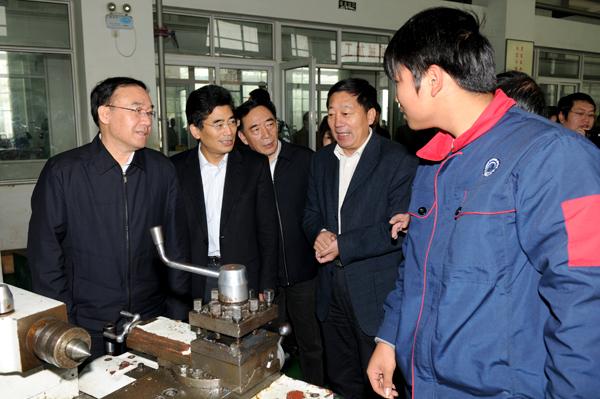 11月18日上午,副省长徐济超在市长王战营、副市长杨书廷及相关部门领导陪同下到新乡职业技术学院就职业教育工作进行考察调研。在学院1号实训基地,徐济超详细听取了院领导关于学院建设发展及教学等方面的情况汇报,对新乡市整合职业教育资源,促进职业教育均衡发展,加快转化人力资源优势为人才资源优势,提高新乡职业教育的核心竞争力的做法给予充分肯定。