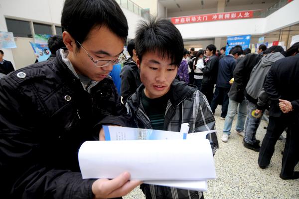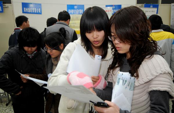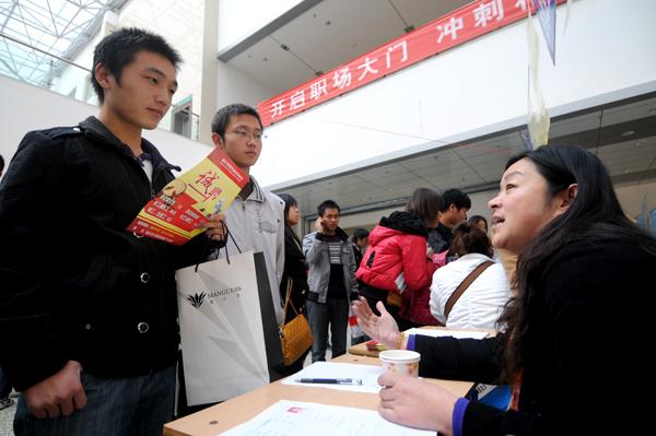 与此同时,从招聘整体状况来看,招聘单位用人需求大幅增加,工资待遇也较前两年有所提高,除注重专业能力、外语口语与应用能力外,更加注重求职者的求职心态、团队合作精神、实践能力和发展潜力。“我们希望前来应聘的学生首先能想好他们想要的、适合他们的到底是哪种职位,在此基础上,充分准备,有目标的来应聘,把他的潜力、职业规划展现给我们,而不是局限于自己的专业。”一位知名汽车制造公司的招聘负责人说。