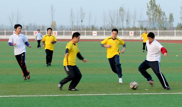 阵阵寒风吹不散热血激情,蓝天白云映出新职院师生风采。11月24日下午,学院工会组织的教工足球体育协会和公共体育教研室组织的学院学生足球队展开了成立以来的第一场比赛。协会是由28名教职工参加的群众性体育组织。会员来自全院16个部门,每周进行2次训练,并且购买了统一的队服。通过训练会员们锻炼了身体,增强了足球水平,培养了团队协作精神,同事之间也加强了沟通。