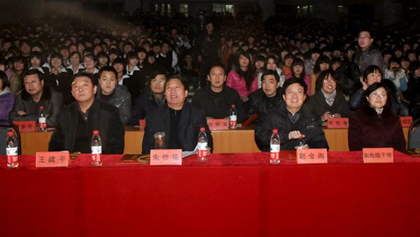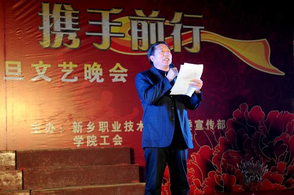 学院党委书记朱性福在晚会上发表新年致词,代表学院领导班子向全体教职员工和全体同学带来了美好的新年祝愿和节日祝福,他热情洋溢地总结了过去的一年学院在教学科研、招生就业等方面取得了可喜成绩和诸多荣誉,希望全院师生在学院党委的正确领导下,进一步解放思想,与时俱进,团结奋进,开拓创新,推进学院各项工作取得新的佳绩,创造新的辉煌。