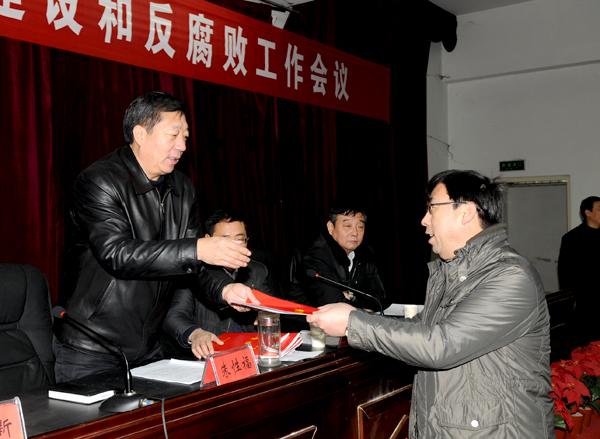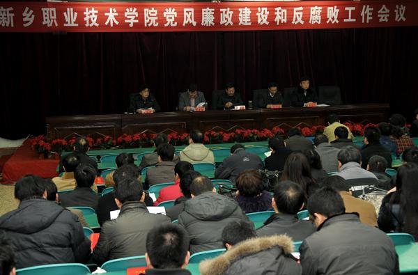 张建新副院长宣读《河南省纠正行业不正之风领导小组关于表彰2011年度学校行风建设先进单位的决定》;赵金周副院长传达中共新乡市纪律检查委员会《关于2011年全市查处违纪违法典型案件情况的通报》。