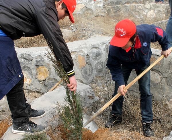 初春天气乍暖还寒,但是并没有影响同学们对此次植树活动的热情,在老师的现场指挥下,同学们有序的加入植树、护树的队伍。大家手持铁锹,齐心协力铲土填坑、挥锹培土,干劲十足,带队的领导、老师也参加到了植树活动中来。在老师们的指导下,同学们超额完成了团市委安排的植树任务。