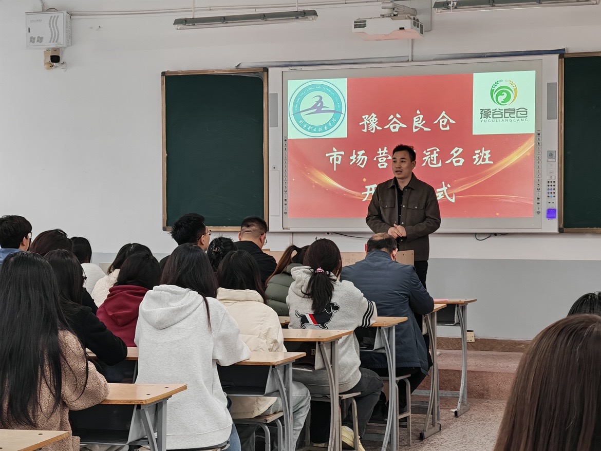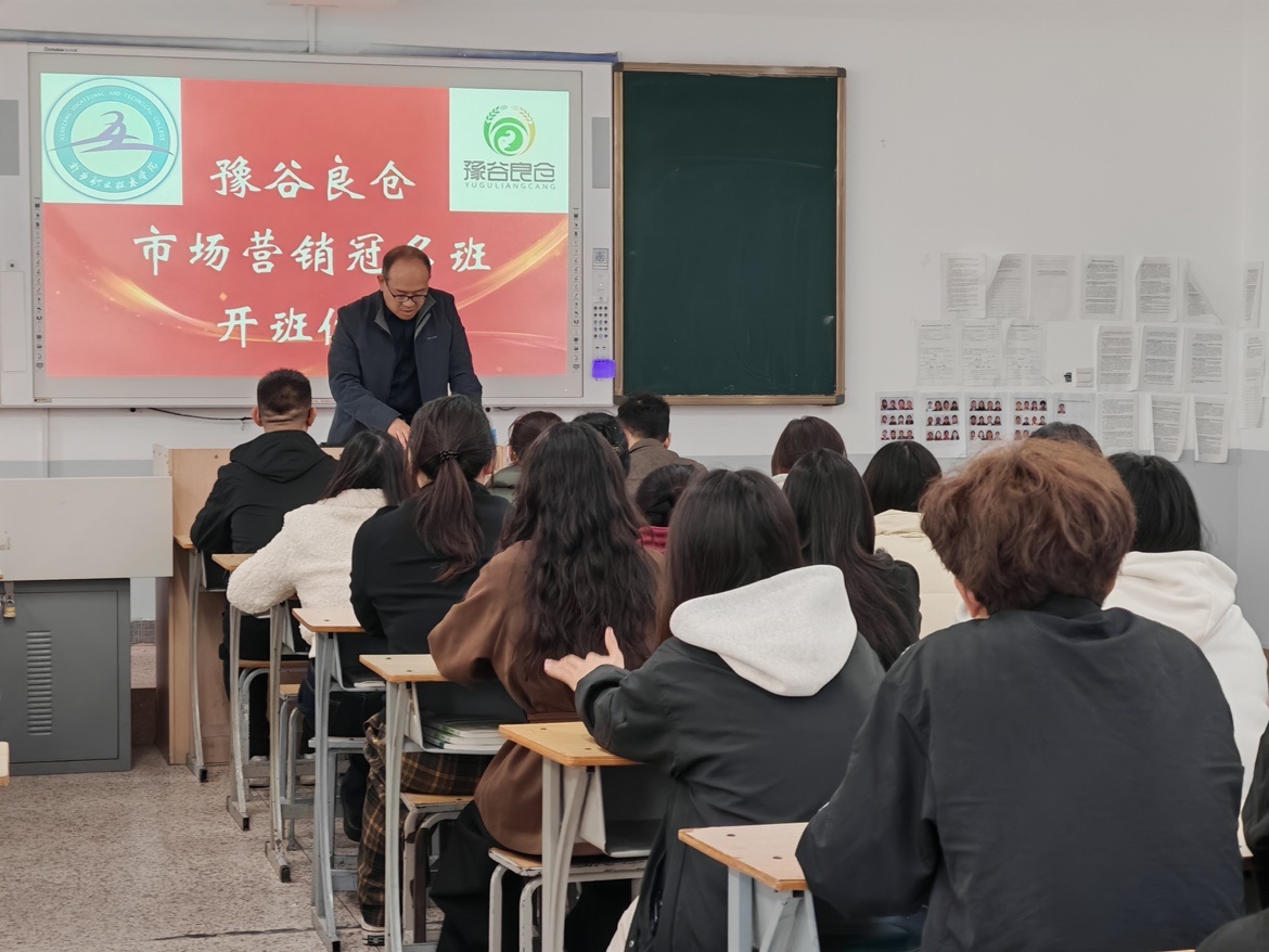 2025年3月11日,新乡职业技术学院财经学院与豫谷良仓商贸有限公司联合举办的“豫谷良仓市场营销冠名班”开班仪式在综合楼419教室隆重举行。豫谷良仓集团副总经理郭明良、财经学院副院长郭军营出席活动并致辞,学院师生代表及企业嘉宾共50余人参与,共同见证校企合作新篇章的开启。