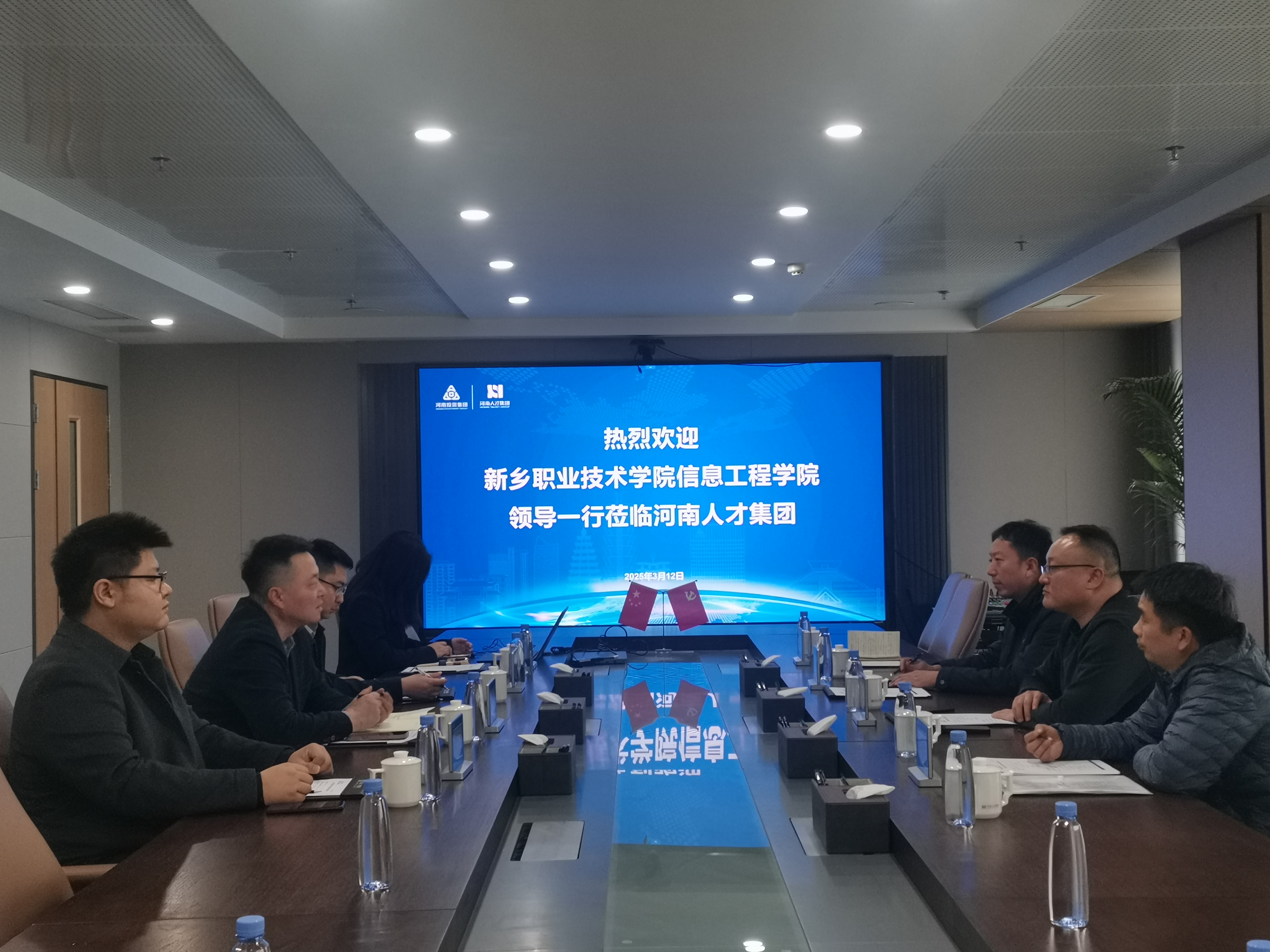 为深入贯彻落实校企合作的广度和深度,筹建校企合作产业学院,3月12日下午,由信息工程学院党总支副书记程勇兵,副院长王延涛带队、产教融合科科长尚新闻、辅导员赵严一行赴河南省人才集团有限公司开展企业调研活动,双方就共建产业学院、引企入校等进行了深入交流。