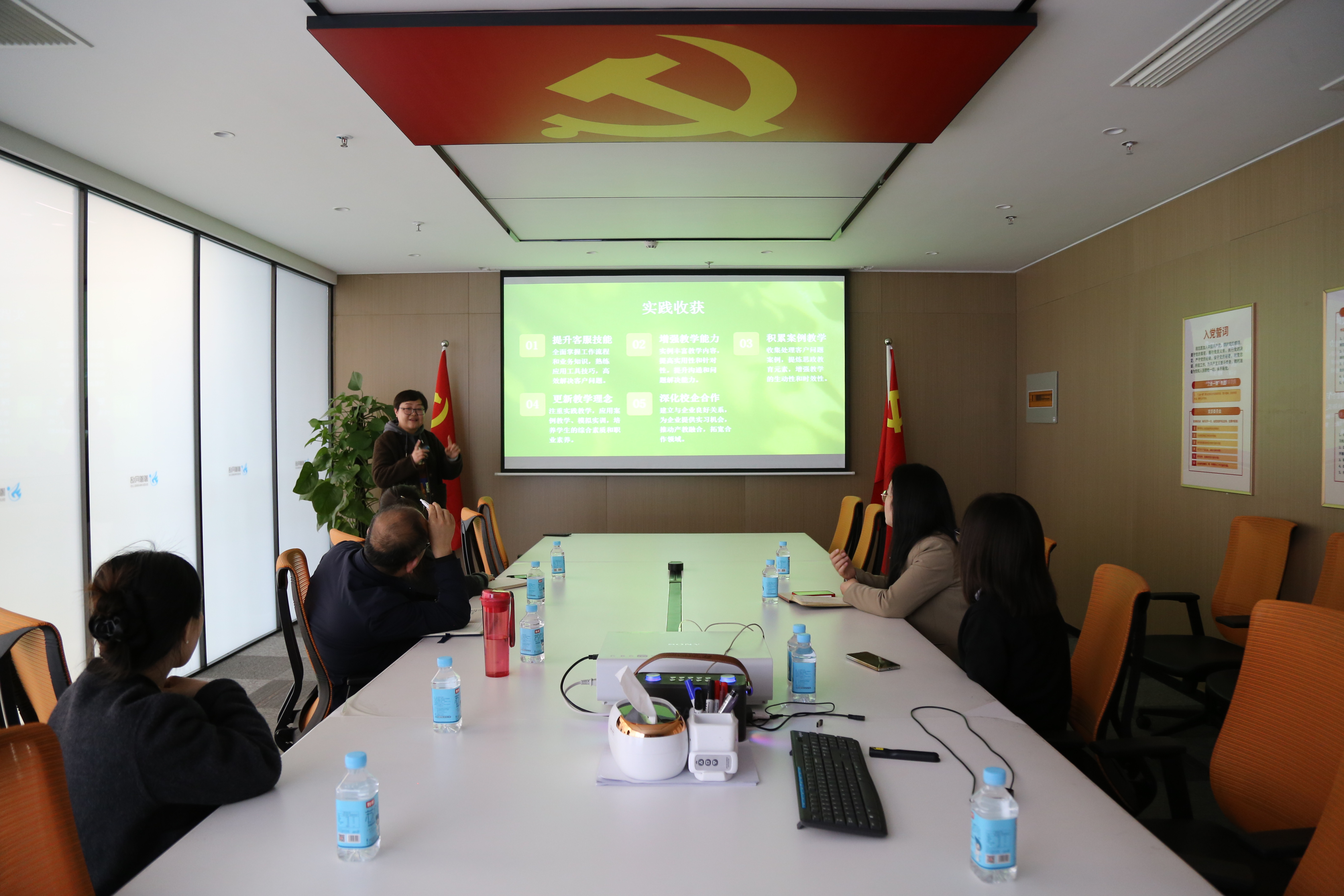 新乡市嘟嘟网络技术有限公司和财经学院于2024年共同建立了教师企业实践流动站,市场营销教研室骨干教师张贝目前在该公司进行企业实践工作。调研会上,张贝老师就近期自己在新乡市嘟嘟网络技术有限公司的入站工作进行了详细汇报,张老师感谢了企业为财经学院提供了宝贵的教师实践机会,并表示通过在企业的入站学习,深度体验了营销类各工作岗位的实际工作流程,参与了企业项目的具体实施和执行,为今后的教学工作提供了新的思路。在座谈会上,双方还围绕产教融合、校企协同育人、“冠名班”课程设置等问题展开深入交流。