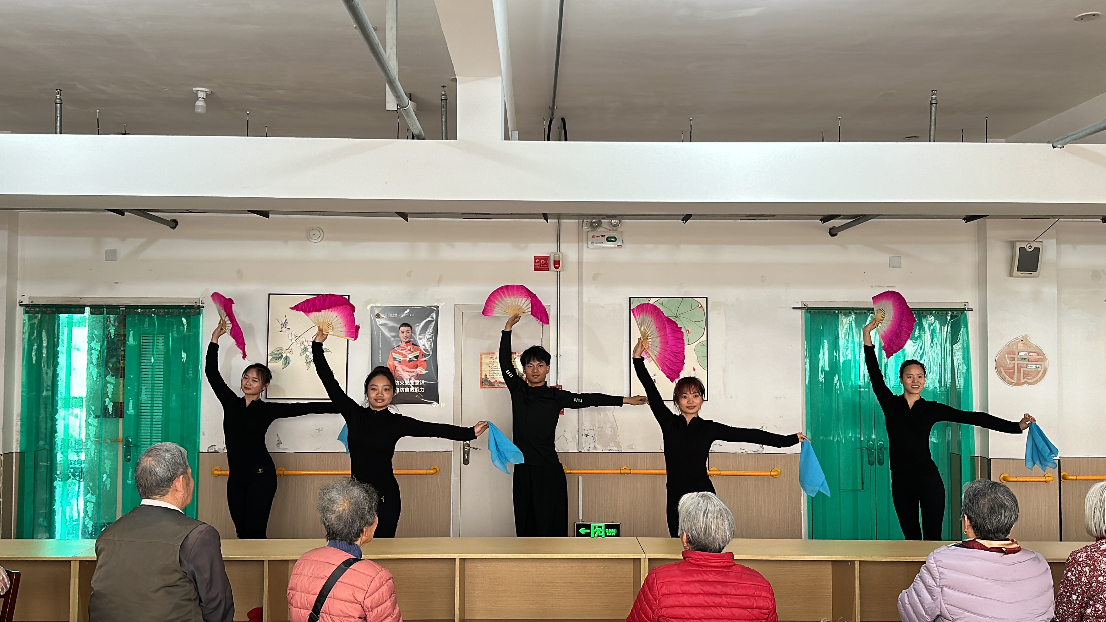 随后,民舞专业的同学们首先为老人们献上了精心准备的舞蹈表演。轻盈的舞步、优美的旋律,让爷爷奶奶情不自禁打起了节拍,脸上也洋溢着欢乐的笑容。