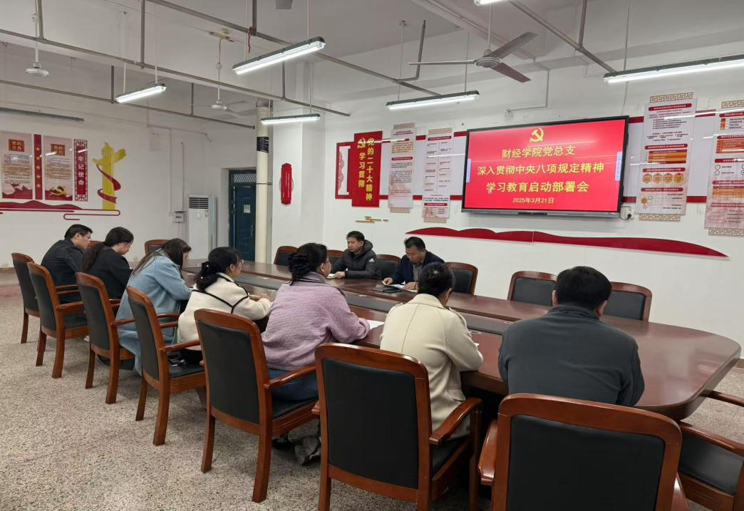3月21日,为积极响应学校启动部署深入贯彻中央八项规定精神学习教育的通知要求,财经学院党总支迅速行动,组织召开专项会议,全面部署学习教育工作。学院党总支全体成员、各党支部书记以及党员代表参会,共同推进此项重要工作。