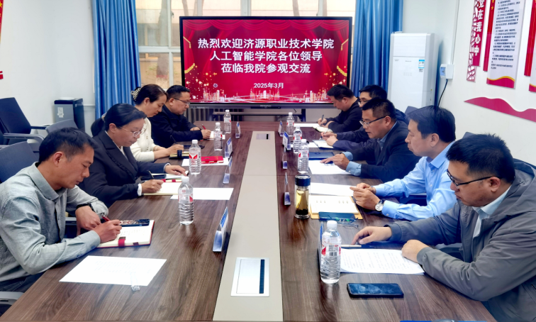 为进一步深化校际交流合作,共享优质办学经验,携手探索人工智能专业培养的新模式,3月24日下午,济源职业技术学院人工智能学院党总支书记王亚利、副院长王东霞、办公室主任杨斌、教研室主任王树森一行到访我校计算机学院进行调研交流。计算机学院党总支书记郭军、院长邢作辉、副书记牛瑞斌、副院长王京峰及相关专业教师热情接待了来访嘉宾。