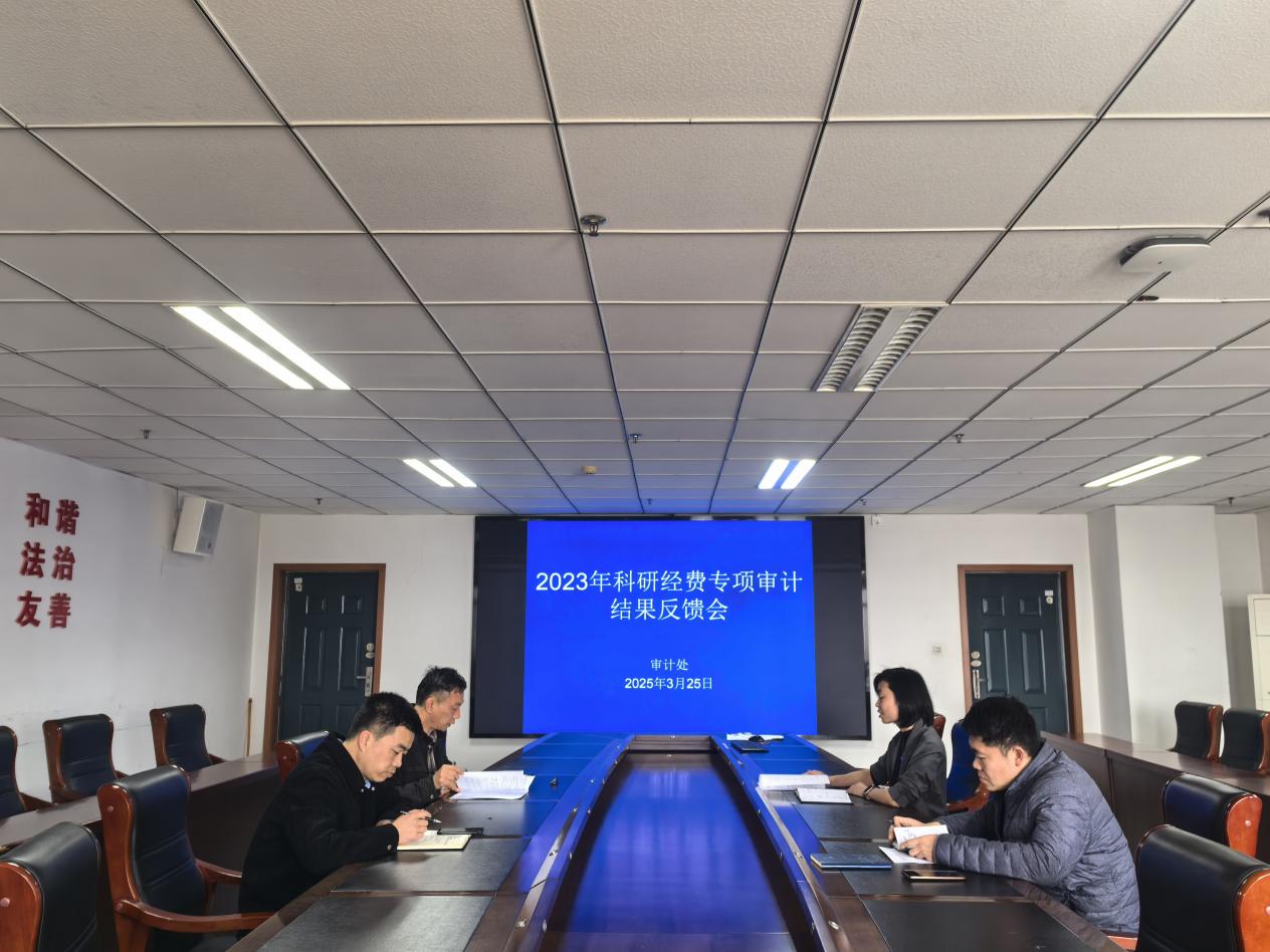 2025年3月25日下午,我校审计处组织召开2023年科研经费审计结果反馈会,审计处、科研外事处相关人员共同出席会议。
