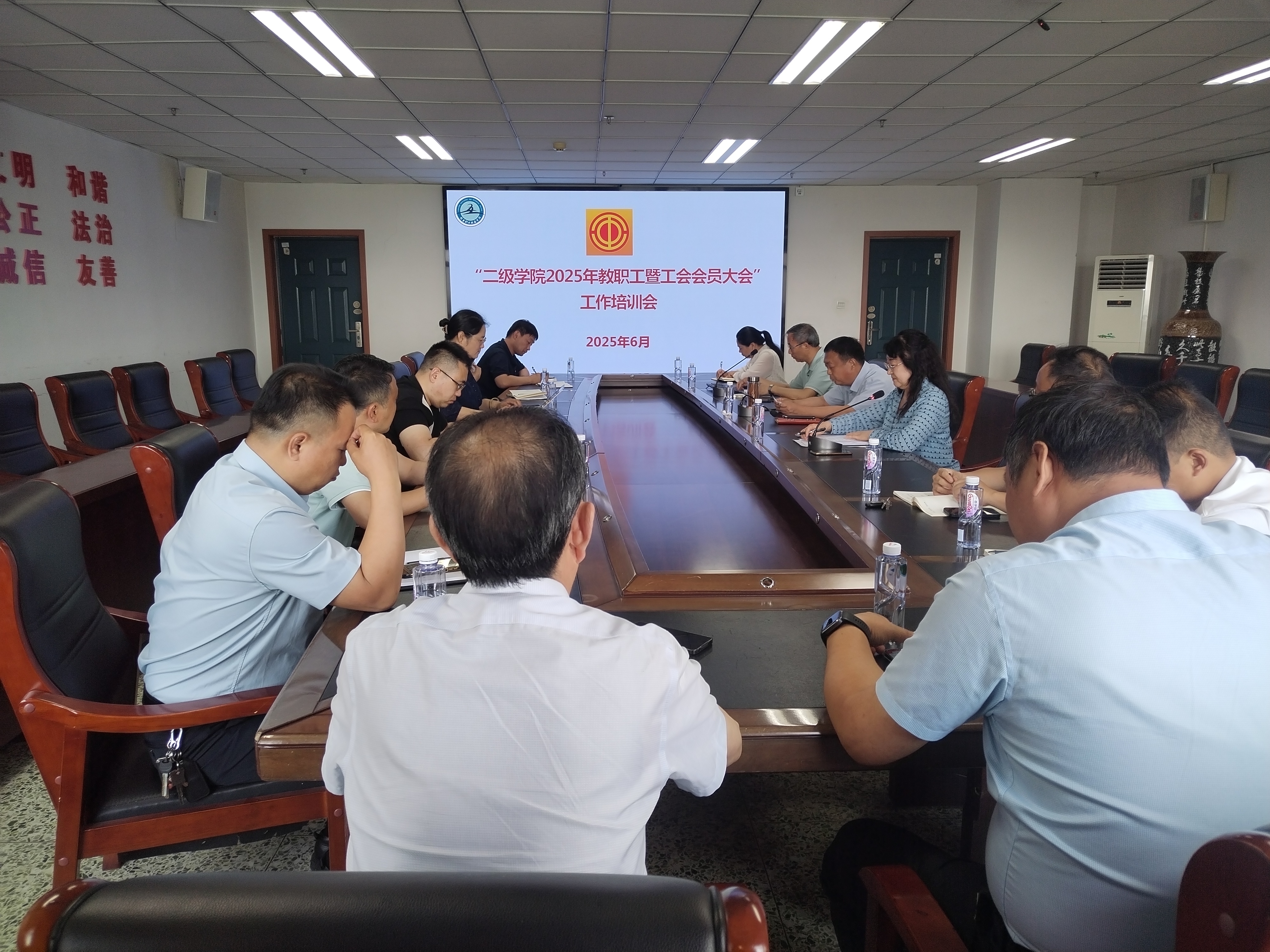 会议重点部署了2025年二级学院教代会相关工作。校工会相关负责人详细解读了学校《关于召开二级学院教职工代表大会的通知》文件精神,结合《学校章程》和《二级教职工代表大会实施办法》,对"二级学院每学年必须召开一次教代会(或教职工大会)"的制度要求进行了说明。会议还就教代会筹备组织工作的关键环节,包括会议备案、召开程序、材料报备等具体事项进行了系统培训和现场答疑。