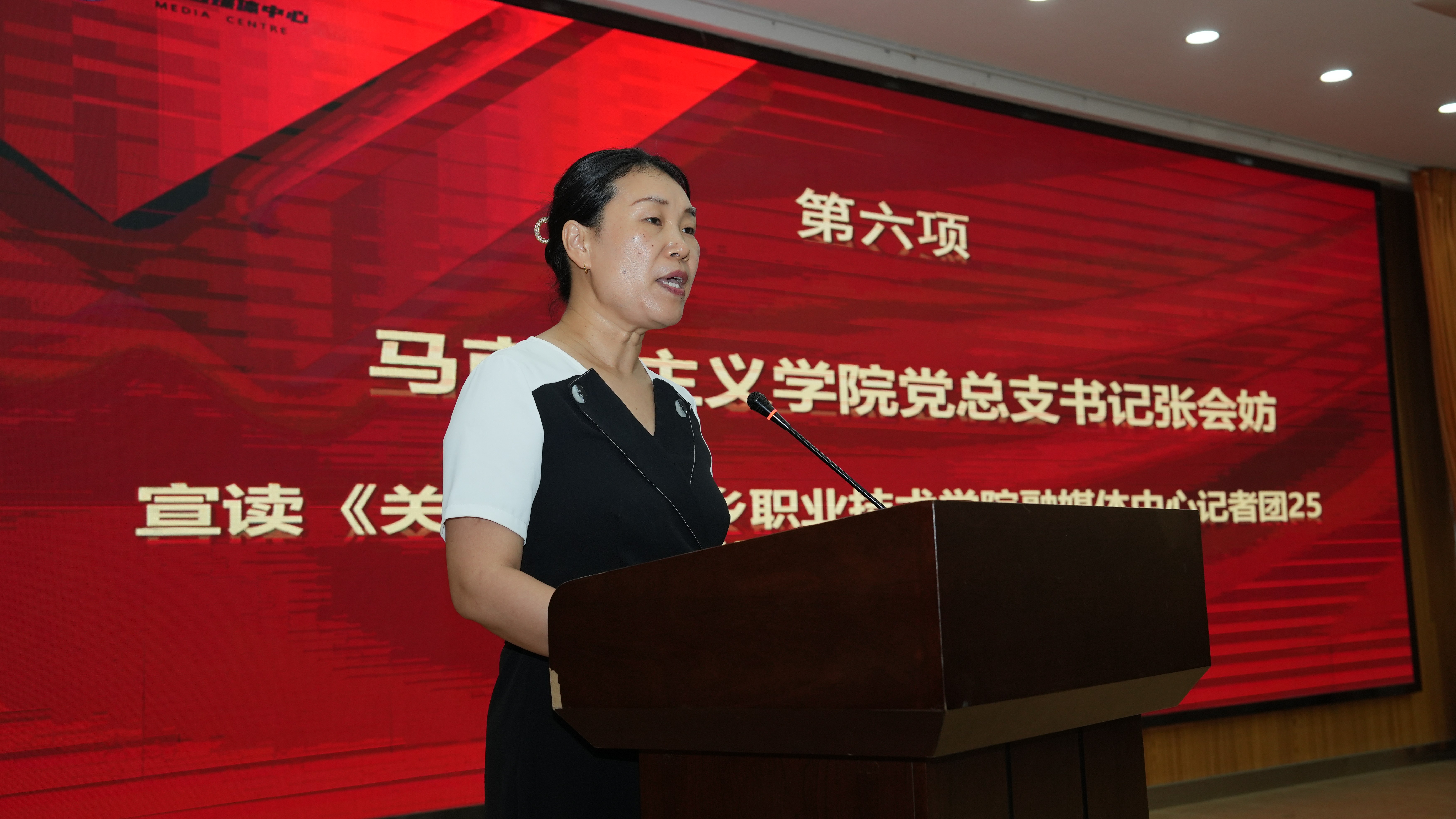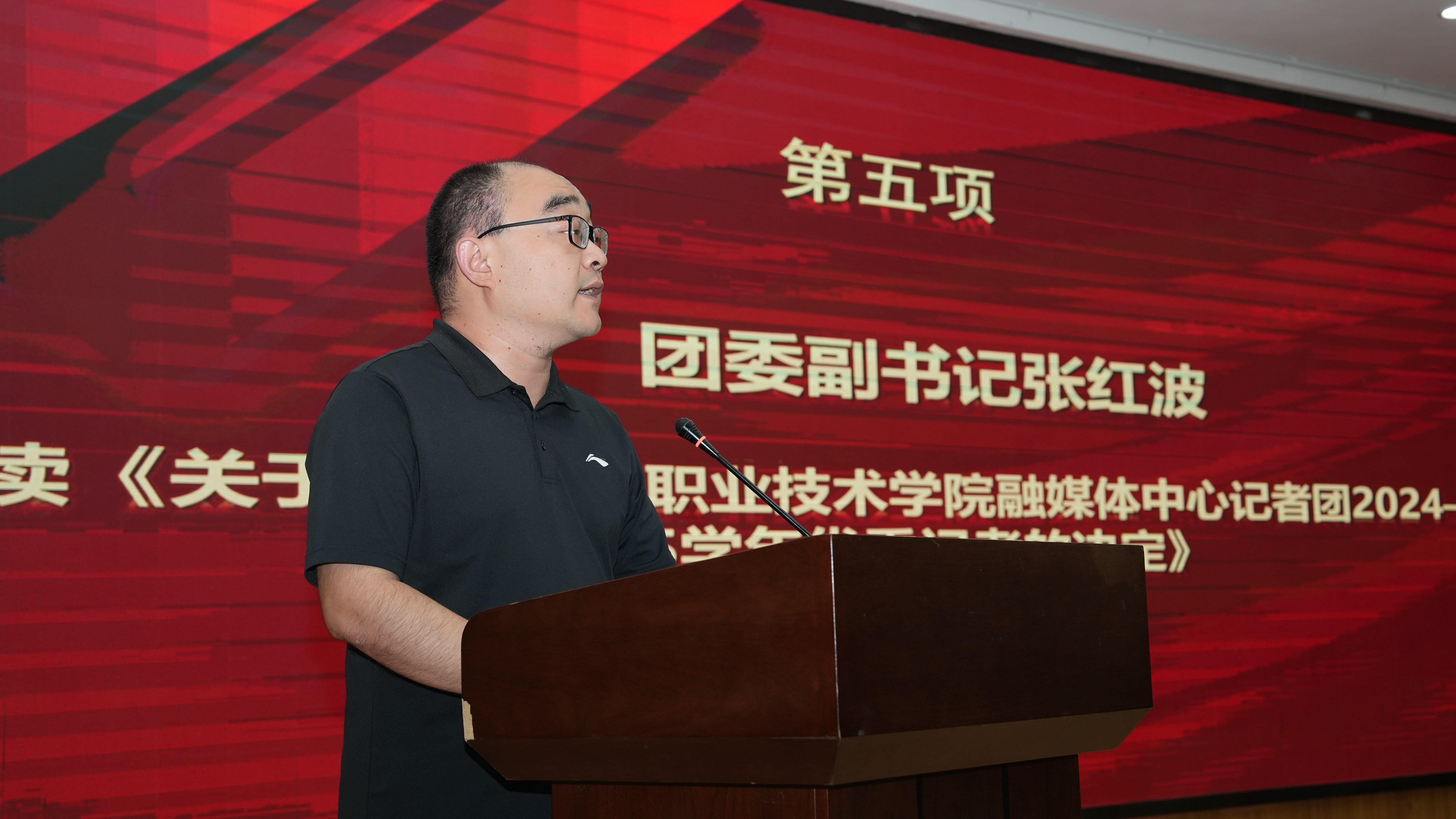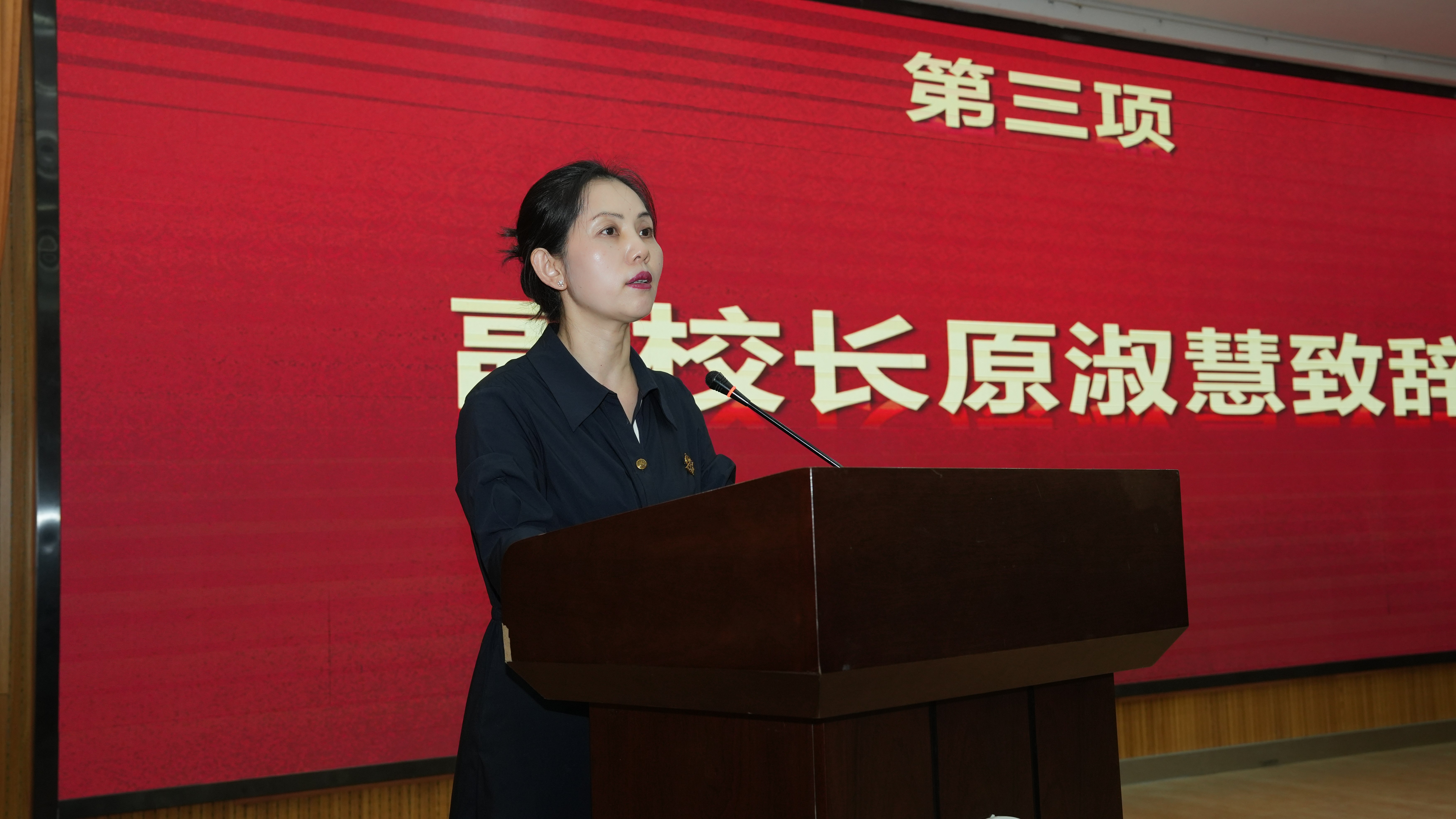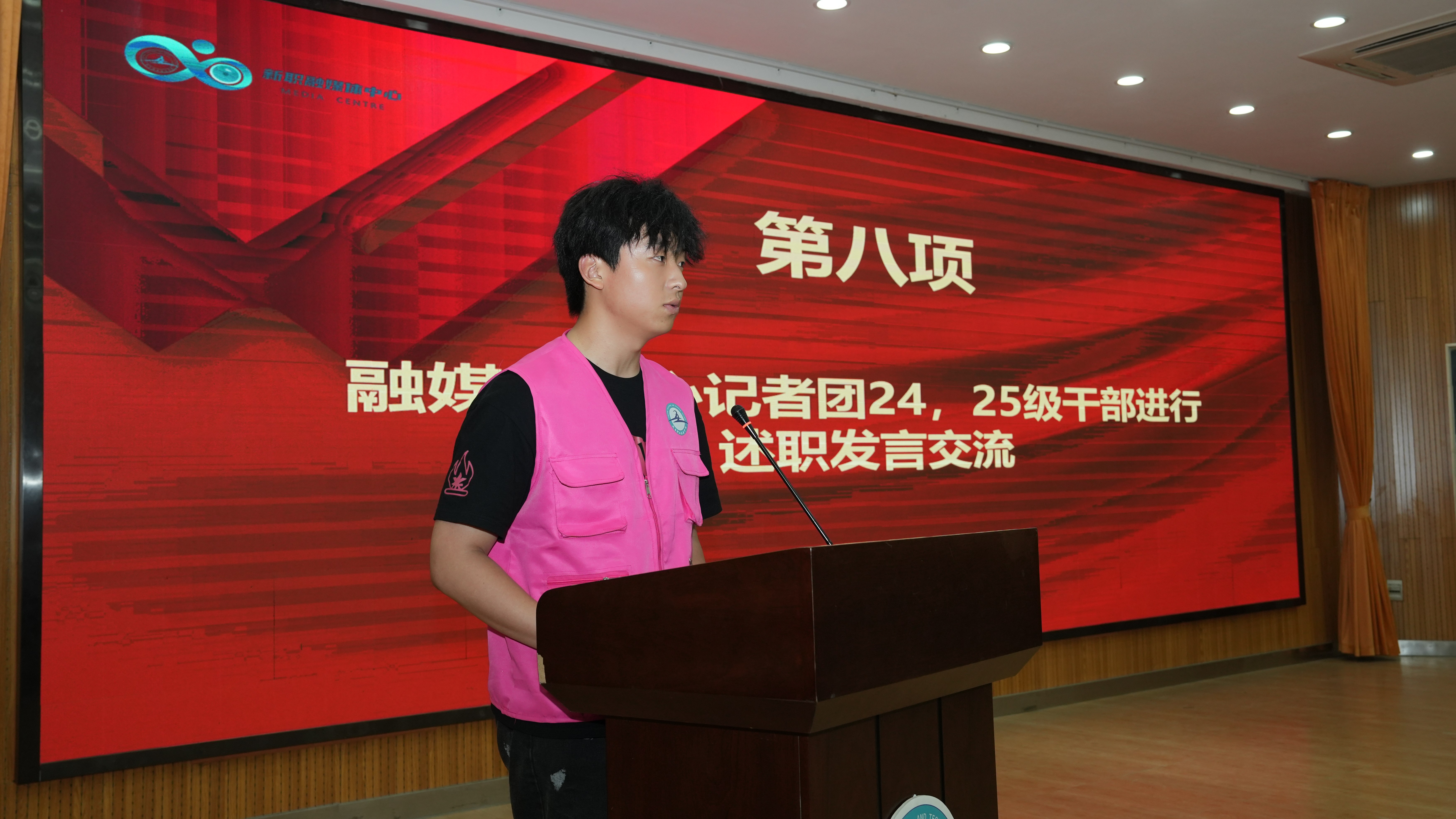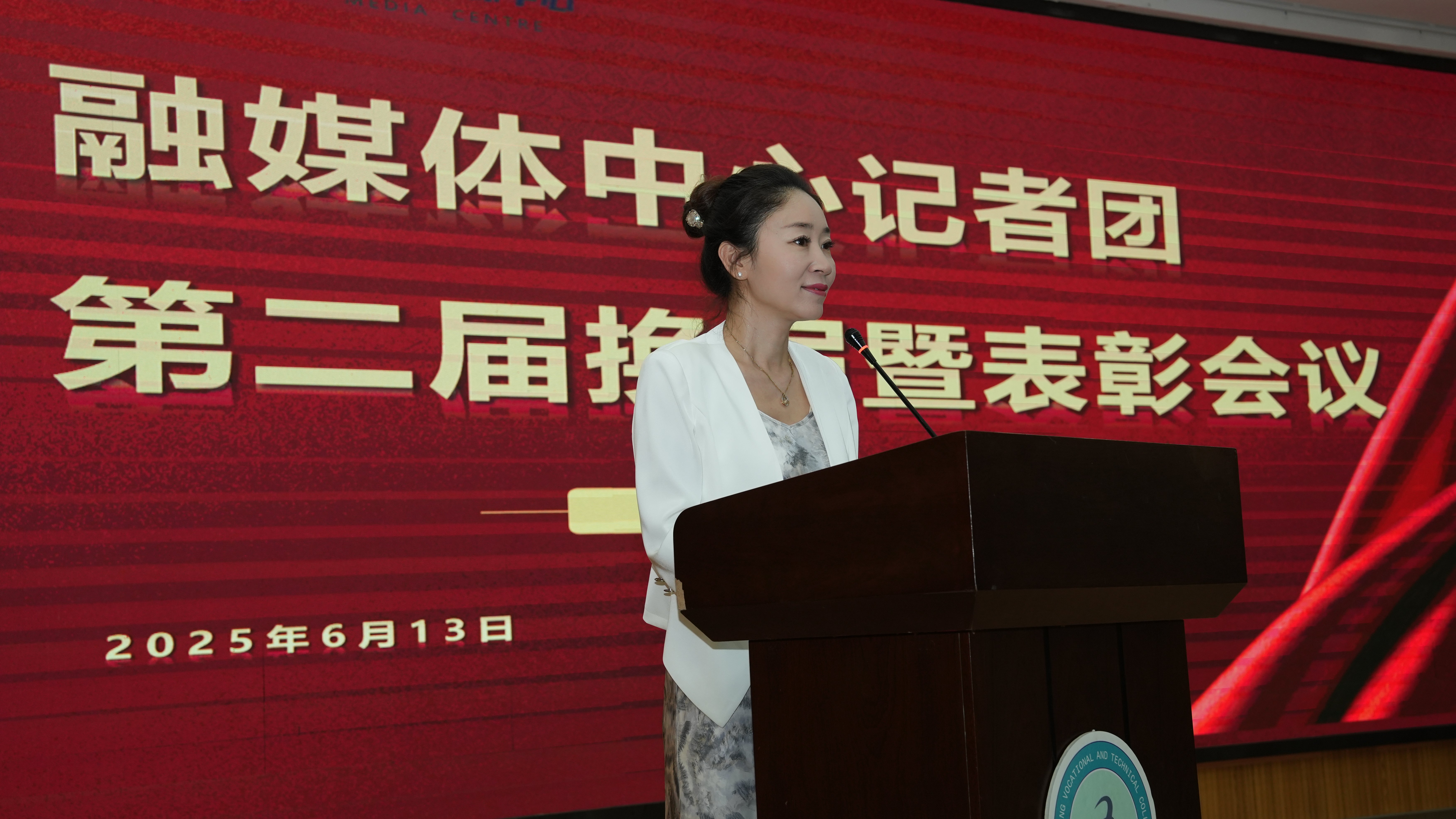 原淑慧首先登台致辞。她深情回顾了过去一年记者团在讲好新职故事、传播校园正能量方面取得的突出成绩,对全体成员的辛勤付出给予了高度评价。原淑慧特别寄语即将上任的新一届干部团队,勉励大家传承优良作风,勇于创新突破,以更强的责任感和更高的专业素养,推动校园融媒体建设迈向新台阶。