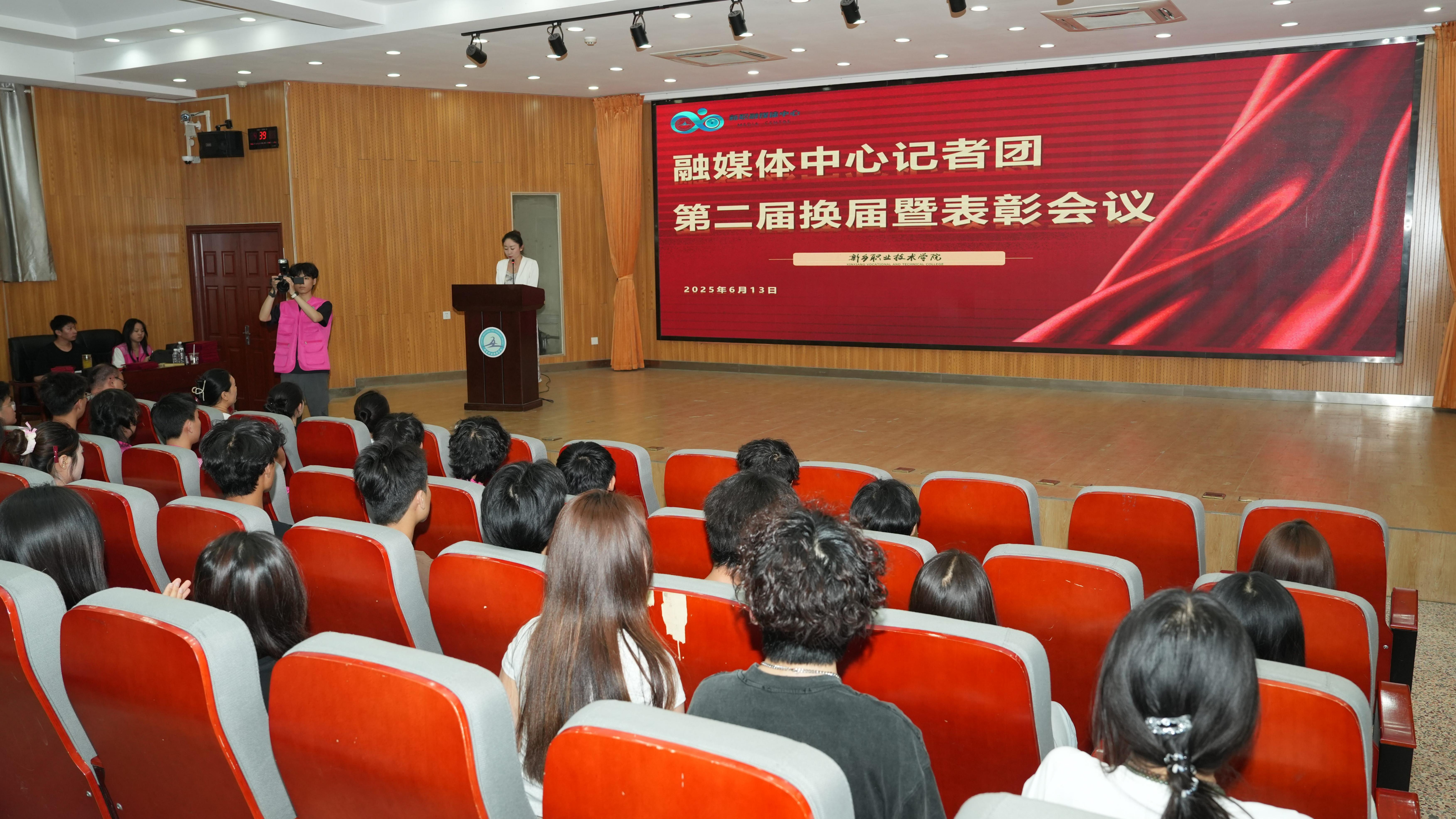 6月13日,新乡职业技术学院融媒体中心记者团第二届换届暨表彰大会在实验楼一楼阶梯教室隆重举行。党委委员、副校长、宣传部部长原淑慧,马克思主义学院党总支书记张会妨,团委副书记张红波,党委宣传部教师及记者团全体成员齐聚一堂,共同见证这一重要时刻。大会由宣传部副部长罗静主持。